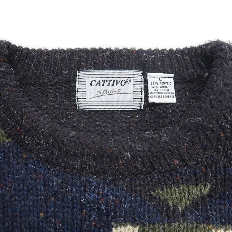 古着 CATTIVO 総柄 アクリルニット セーター 表記:L gd401615n w40203