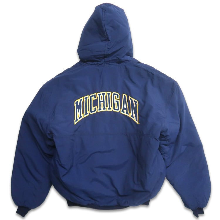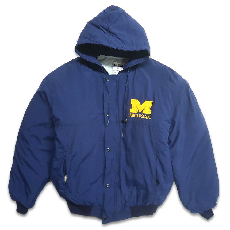 古着 USA製 DeLONG ミシガン カレッジ 中綿パーカーナイロンジャケット ネイビー 表記:M gd401618n w40203