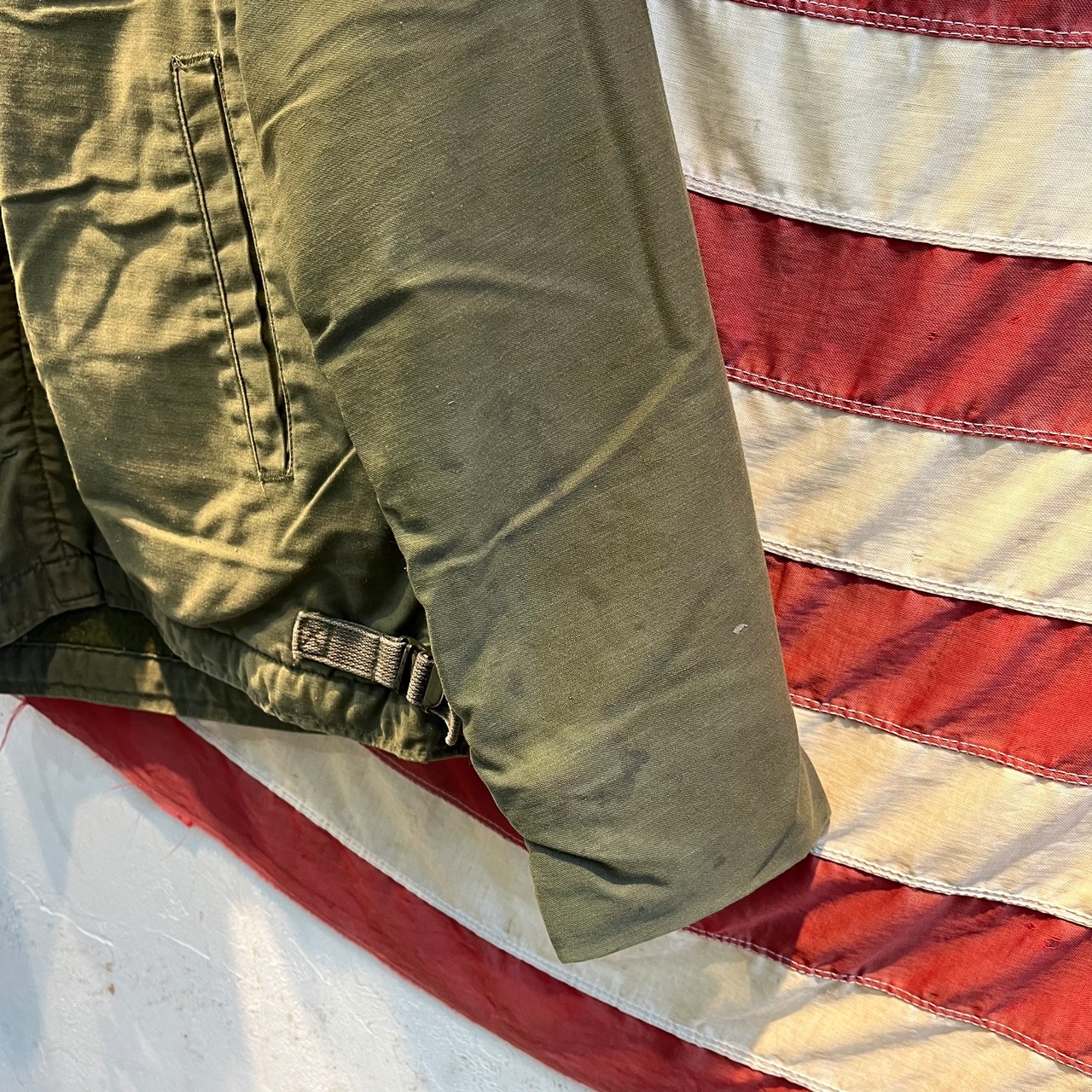 商品説明 :80年代U.S.NAVYのA-2デッキジャケット。ライニングにはボアが使用され、袖口はリブにて風の侵入を防ぎます。比翼仕様でシンプルながら雰囲気抜群のミリタリージャケットです。汚れはございますがダメージは少なく、ボディの色残りが良い一着。