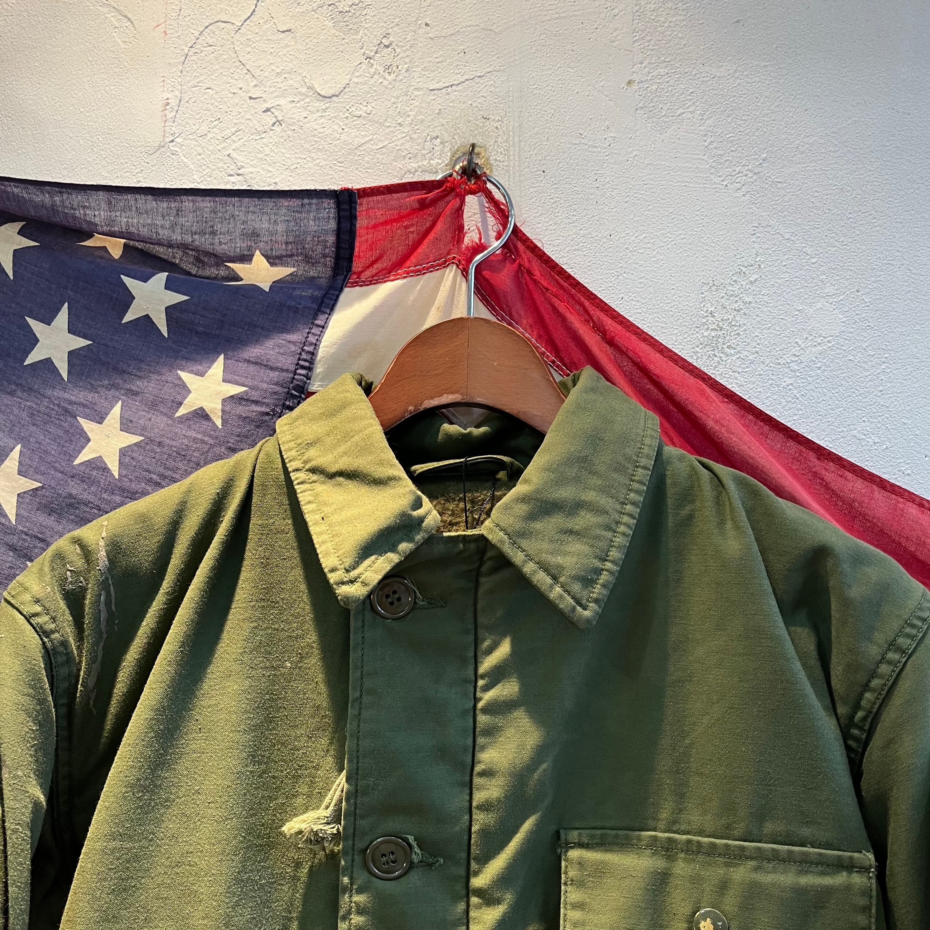 80年代 "M(38-40)" U.S.NAVY A-2デッキジャケット バックステンシル オリーブ ミリタリー 古着 古着屋 高円寺 ビンテージ n40205