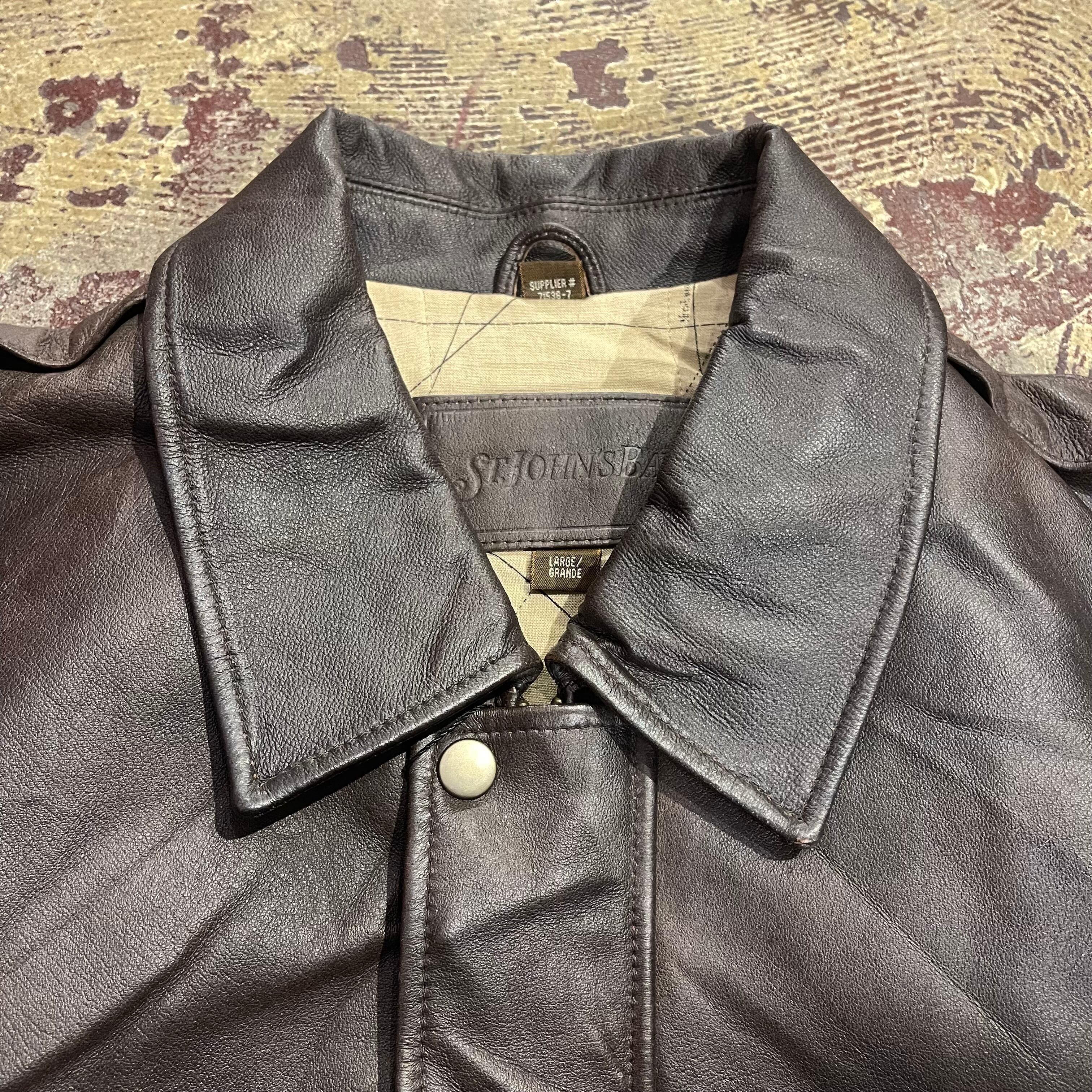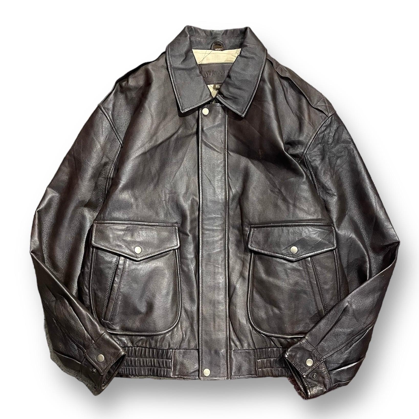 『L』ST.JOHN'S BAY セントジョンズベイ レザージャケット A-2タイプ ブラウンレザージャケット ブラウンレザー レザー ブラウン 茶 古着 古着屋 高円寺 ビンテージ n40218