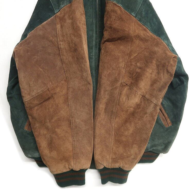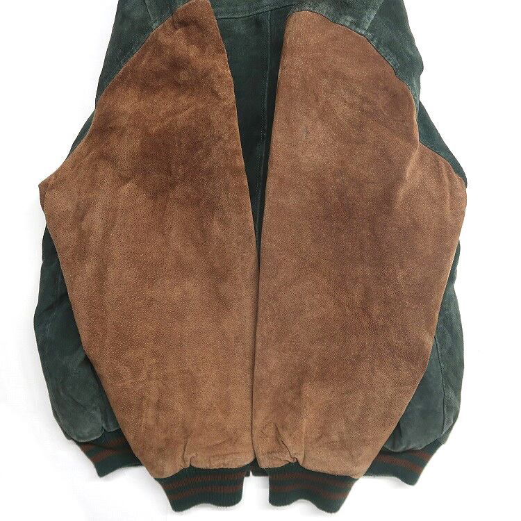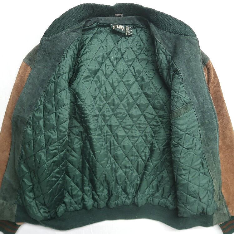 古着 STEFANO スエード レザージャケット ブルゾン グリーン ブラウン 表記:L gd401840n w40228