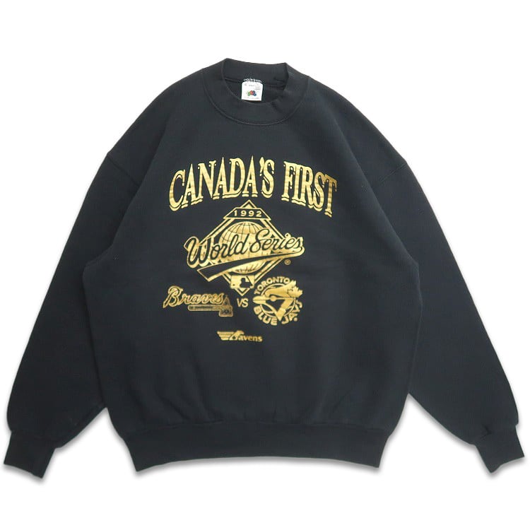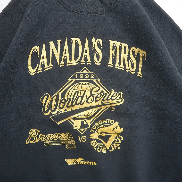 古着 90年代 カナダ製 フルーツオブザルーム プリントスウェット トレーナー ブラック 表記:XL gd401884n w40304