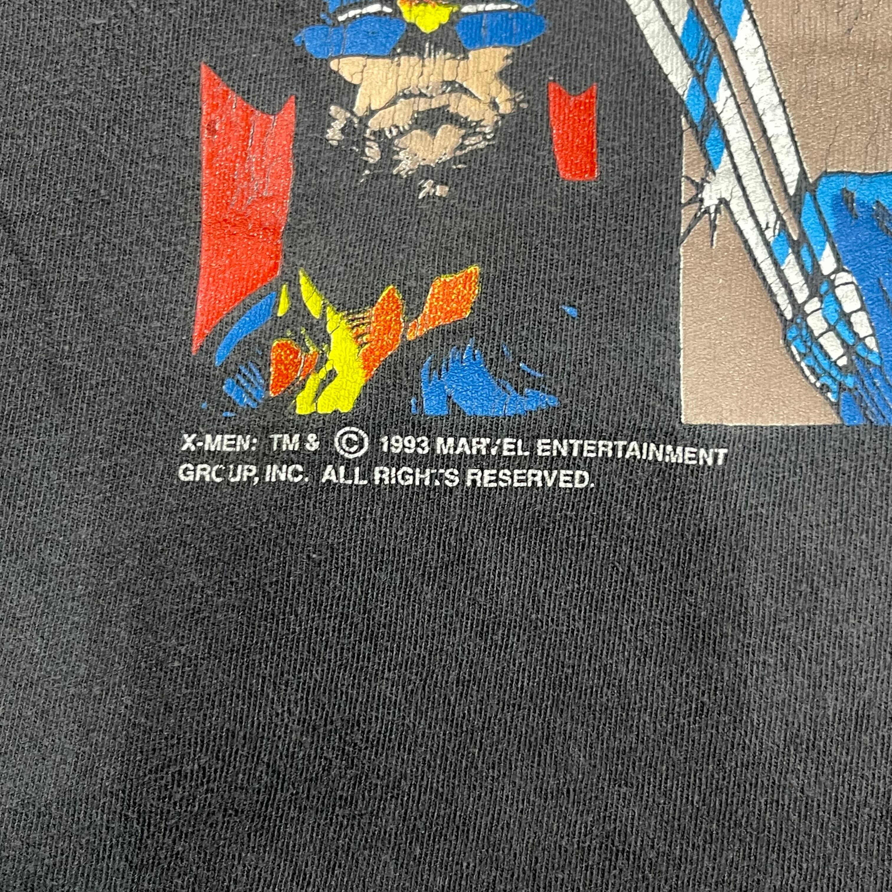 90年代 USA製 size: XL 【 MARVEL COMICS 】X-MEN アメコミ コミック ムービーT 映画Tシャツ 大判プリント 墨黒ボディ フェード 古着 古着屋 高円寺 ビンテージ n40305