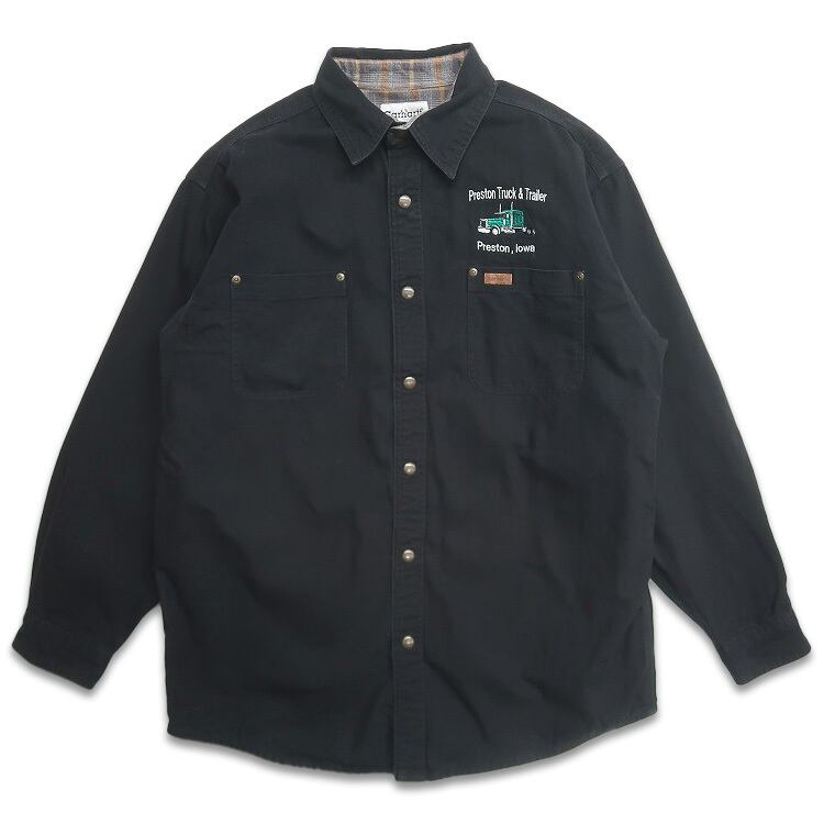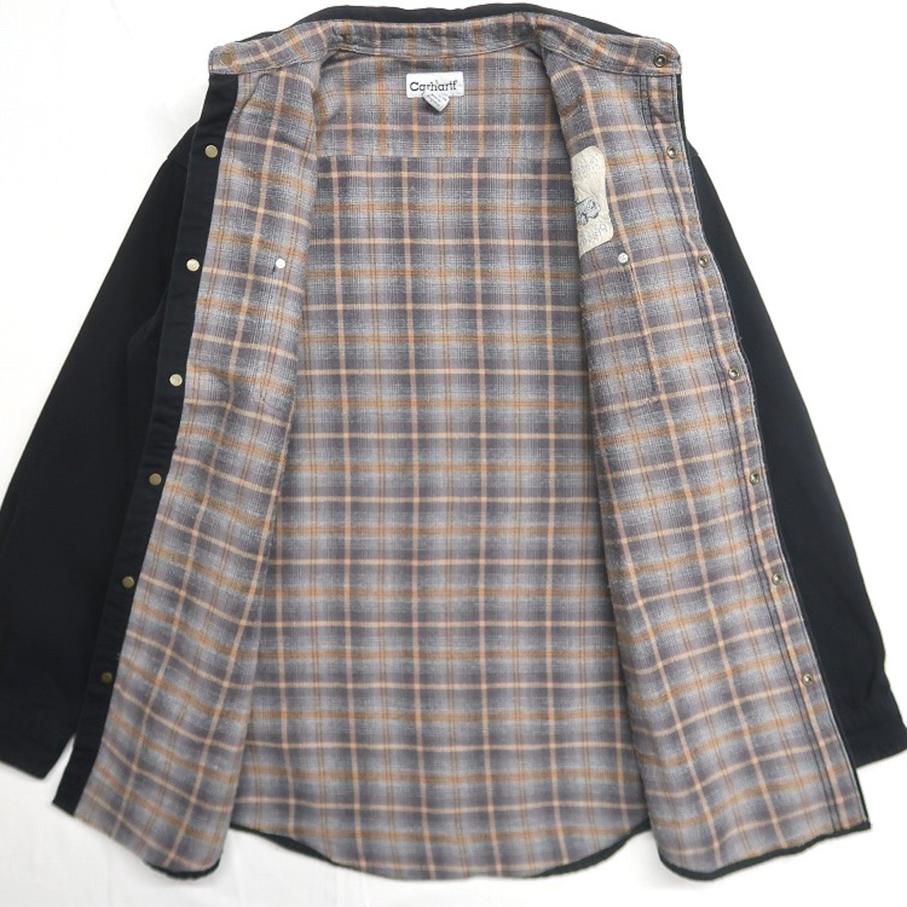 古着 カーハート CARHARTT ダック ワークシャツ チェックライナー ブラック 刺繍 表記:L gd401916n w40307