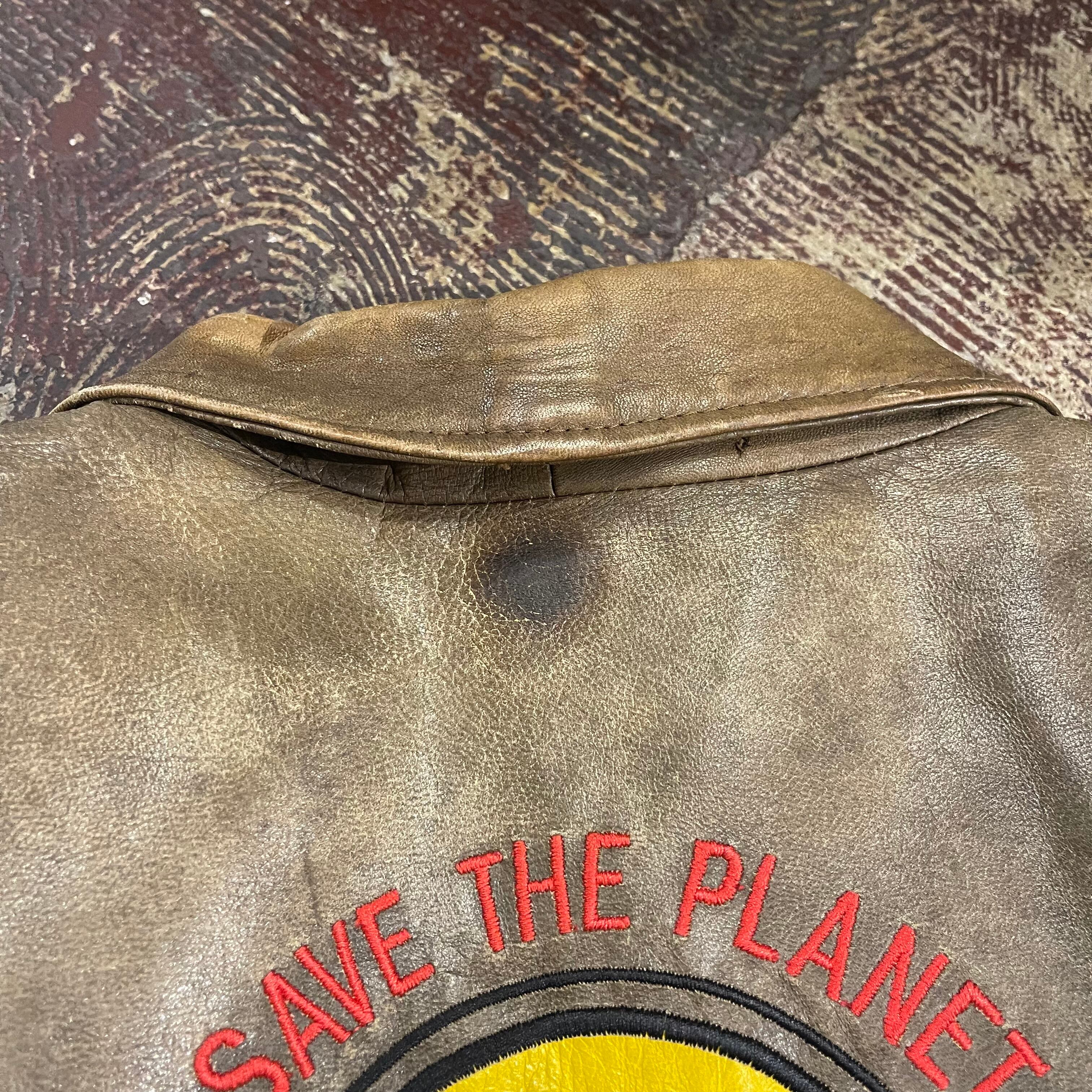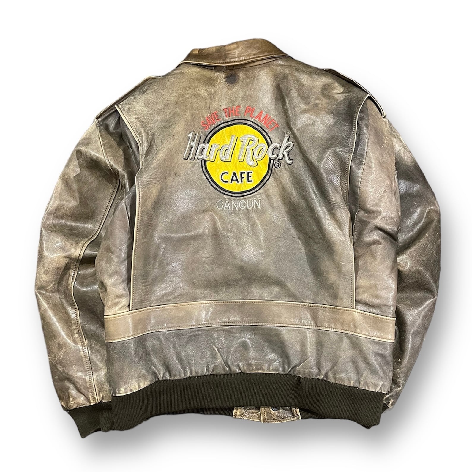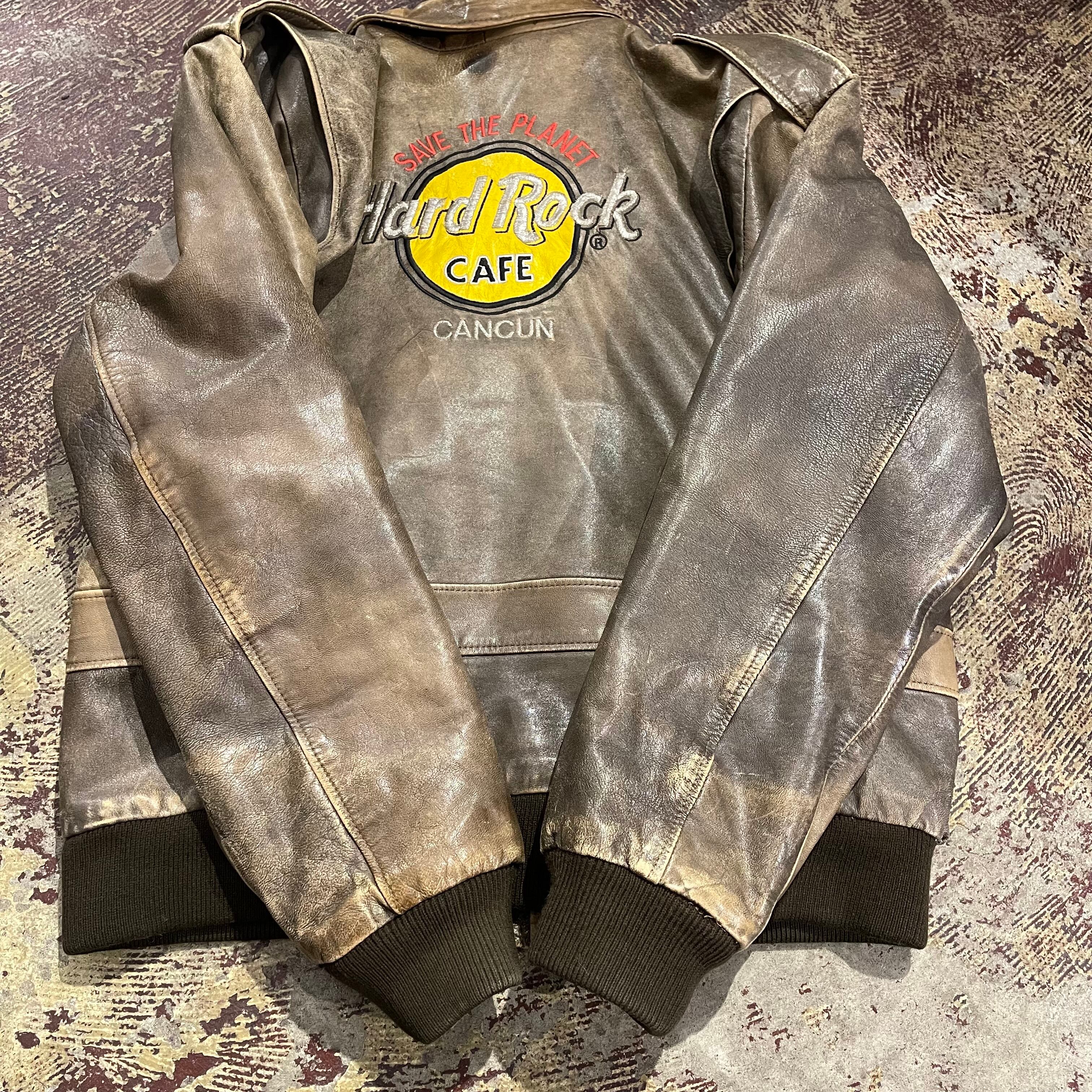 『 L 』Hard Rock CAFE ハードロックカフェ レザージャケット A-2タイプ レザー アメカジ ブラウンレザー 雰囲気系 ブラウン 茶 古着 古着屋 高円寺 ビンテージ n40311