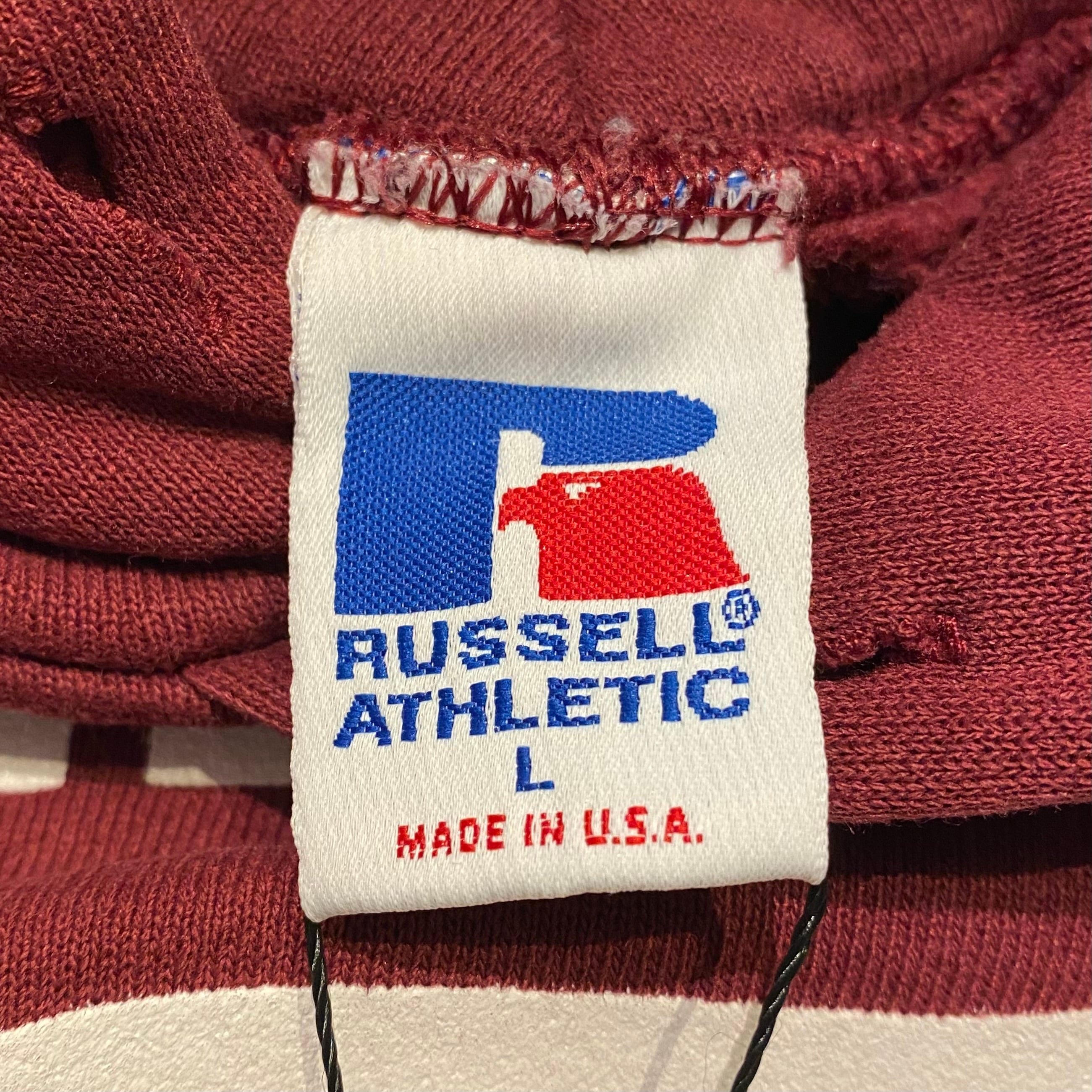 USA製 90年代 "L" Russel Athletic ラッセル アスレチック プリントスウェット パーカー 3段プリント ウィングフット バーガンディー 古着 古着屋 高円寺 ビンテージ n40314