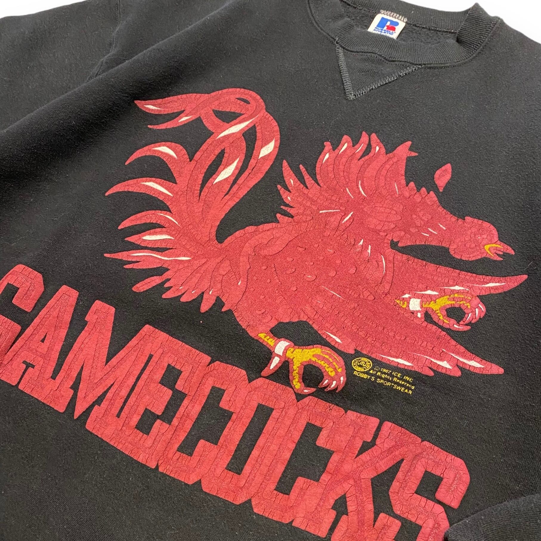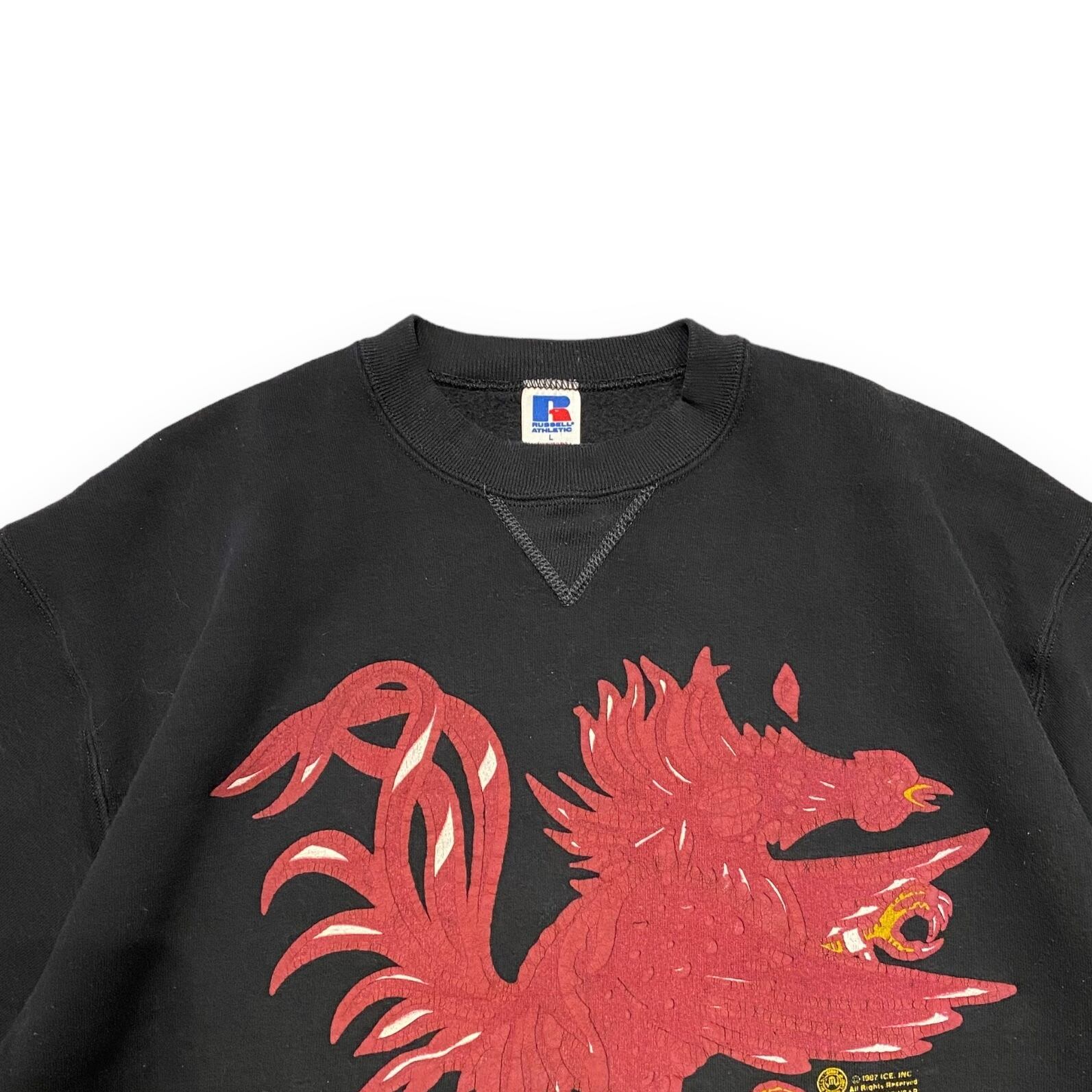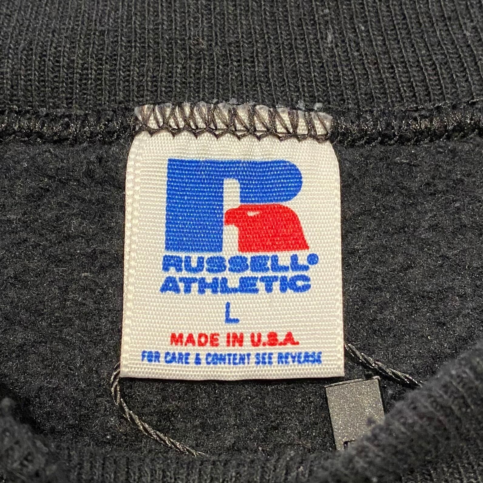 USA製 80年代 "L" Russel Athleticラッセル アスレチック 前Vプリントスウェット 両面プリント 黒 ブラック 古着 古着屋 高円寺 ビンテージ n40314
