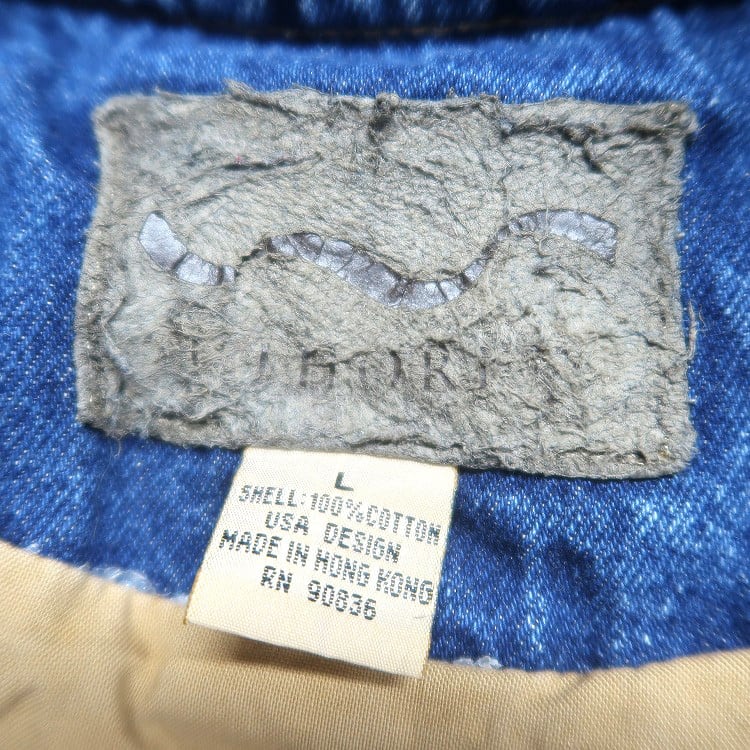 古着 PORT AUTHORITY 袖切り替え デニムスタジャン ワンポイント 刺繍 表記:L gd402037n w40319