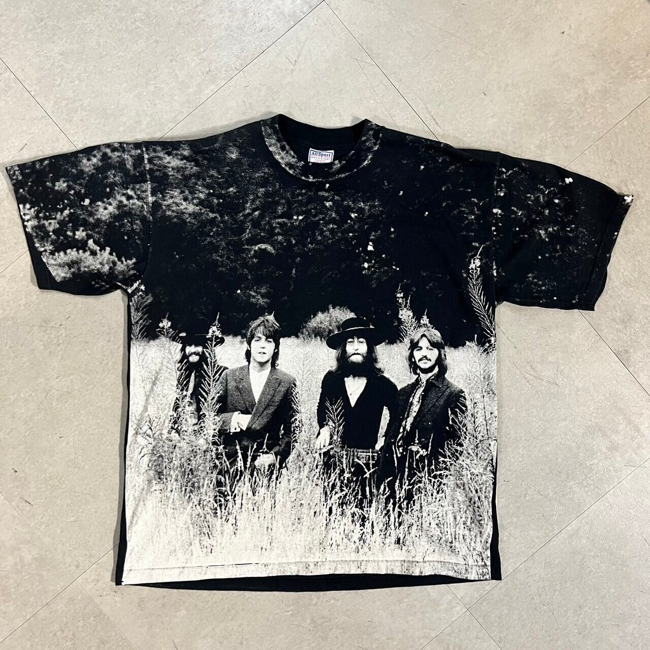 USA製 90年代〜 size:XL 【 BEATLES 】ビートルズ オールオーバープリント バンドTシャツ バンT AllSport オールスポーツボディ 両面プリント モノクロ 古着 古着屋 高円寺 ビンテージ n40322