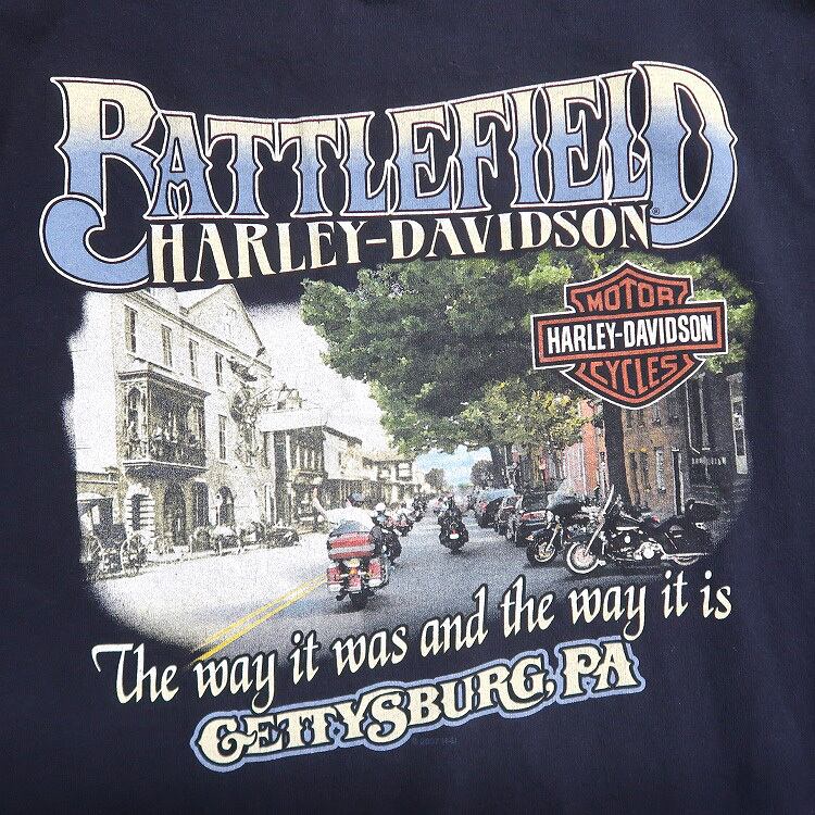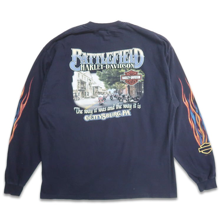 古着 USA製 ハーレーダビッドソン プリントロングスリーブTシャツ ロンT ネイビー 表記:XL gd402074n w40323