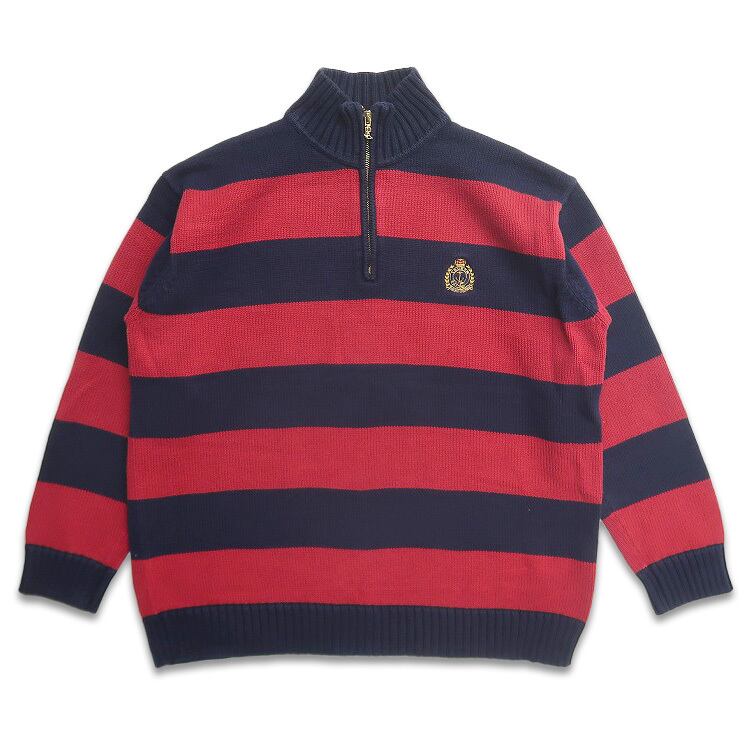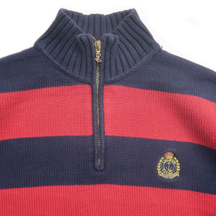 古着 ラルフローレン POLO RALPH LAUREN ハーフジップ コットンニットセーター ボーダー 表記:L gd402096n w40325