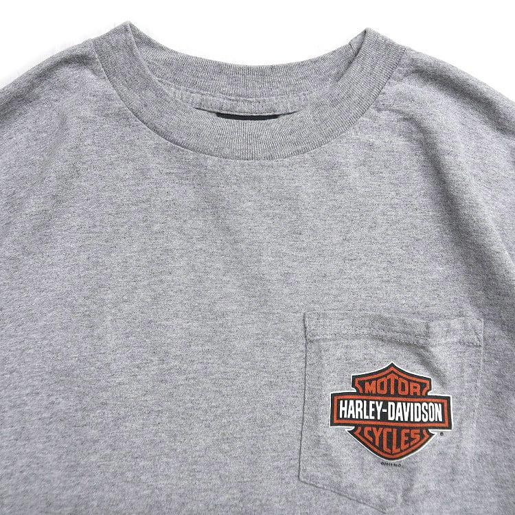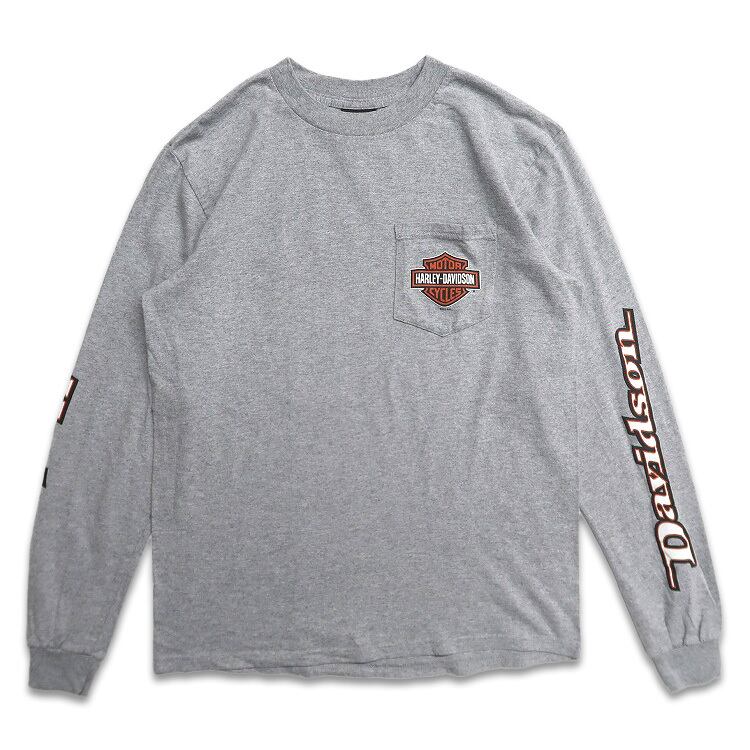 古着 ハーレーダビッドソン プリントロングスリーブTシャツ ロンT ポケット グレー 表記:M gd402103n w40326