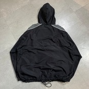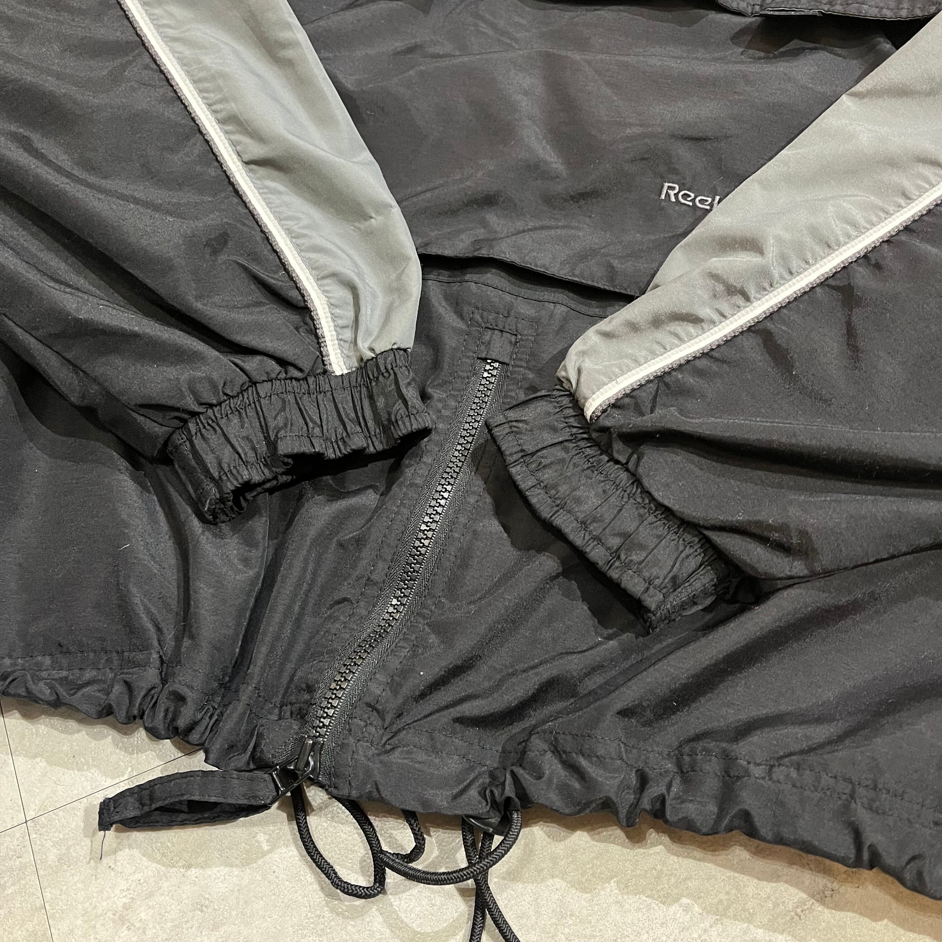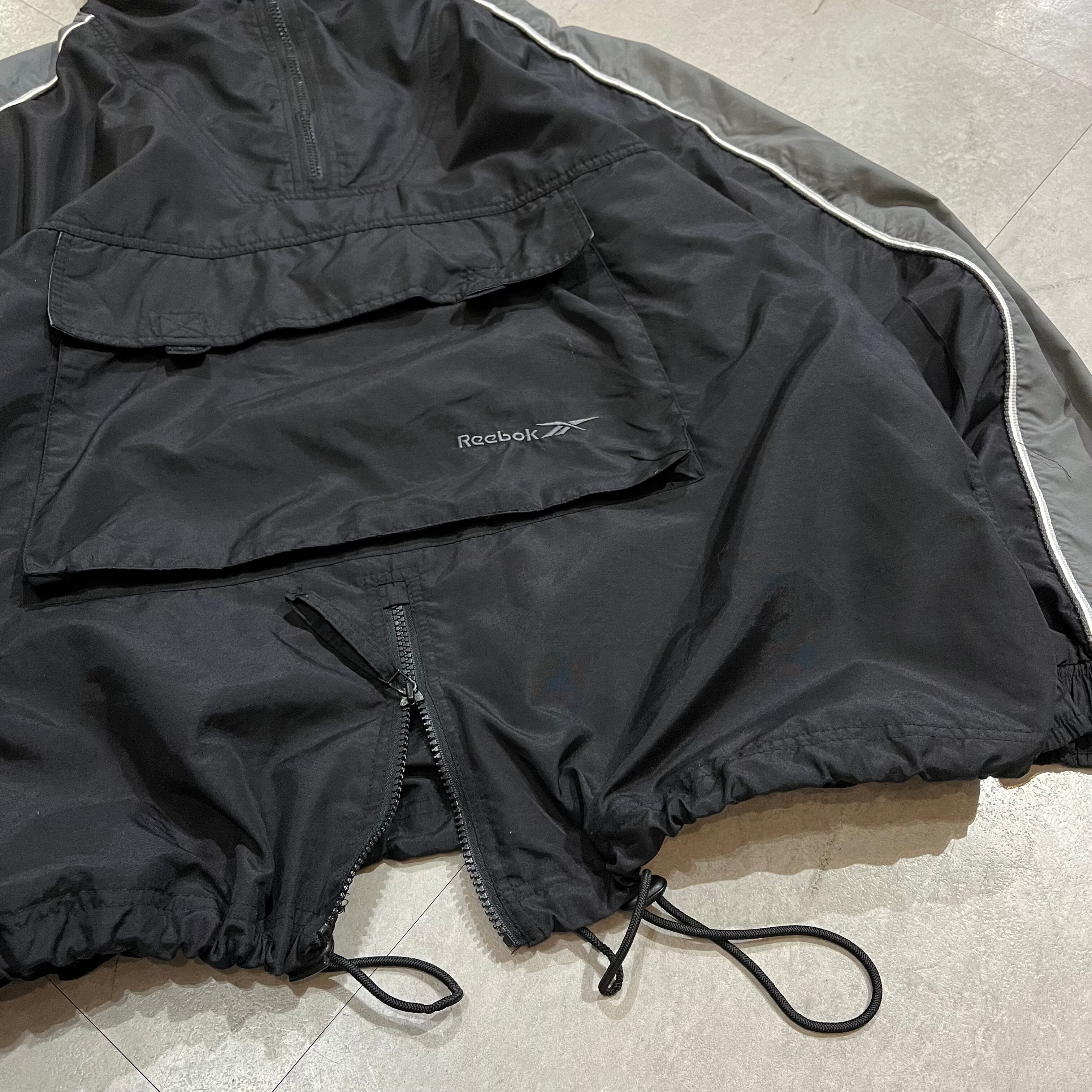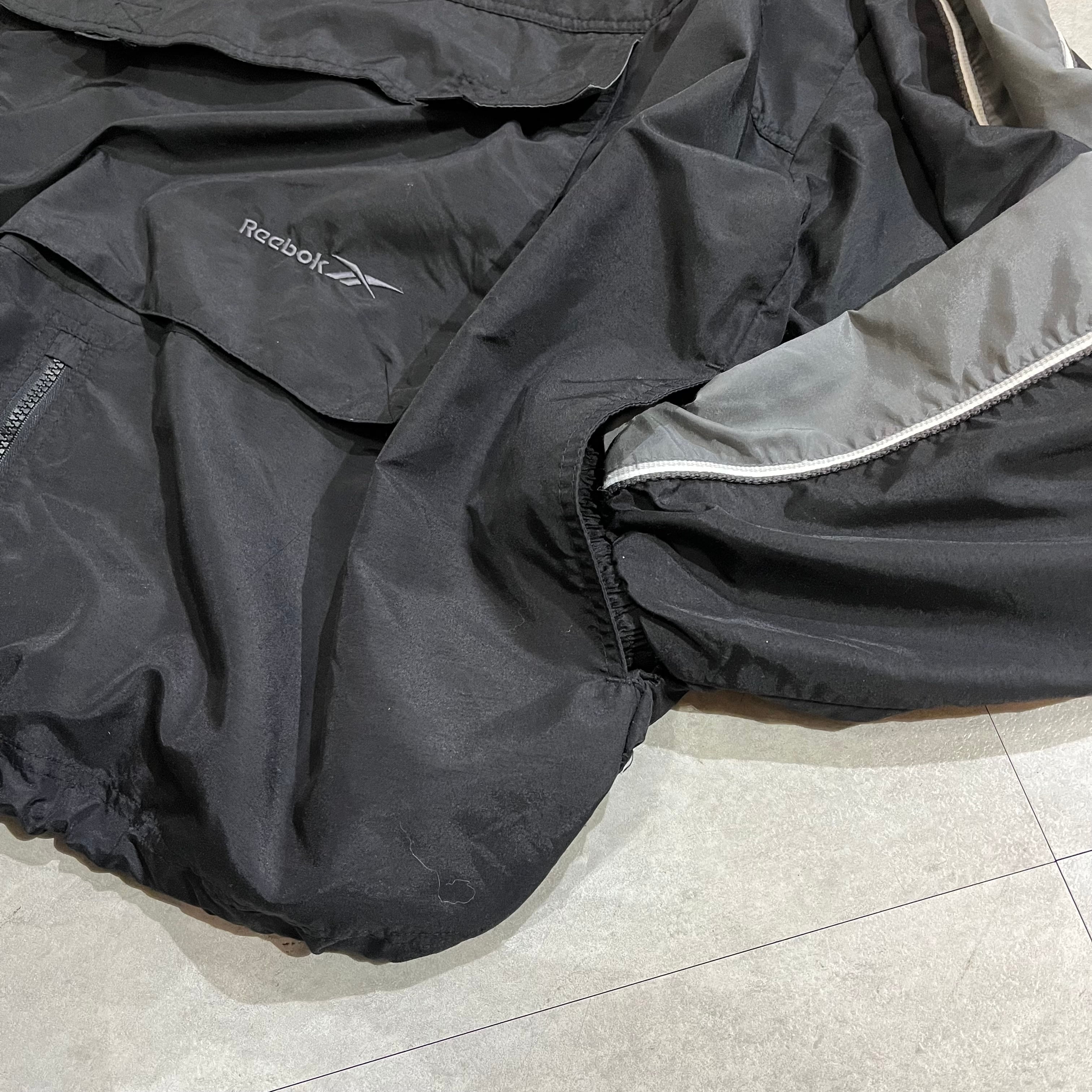 size:L【 Reebok 】リーボック ナイロンジャケット アノラックパーカー アノラック プルオーバージャケット ラグランスリーブ ドローコード フーディー ブラック 黒 古着 古着屋 高円寺 ビンテージ n40329
