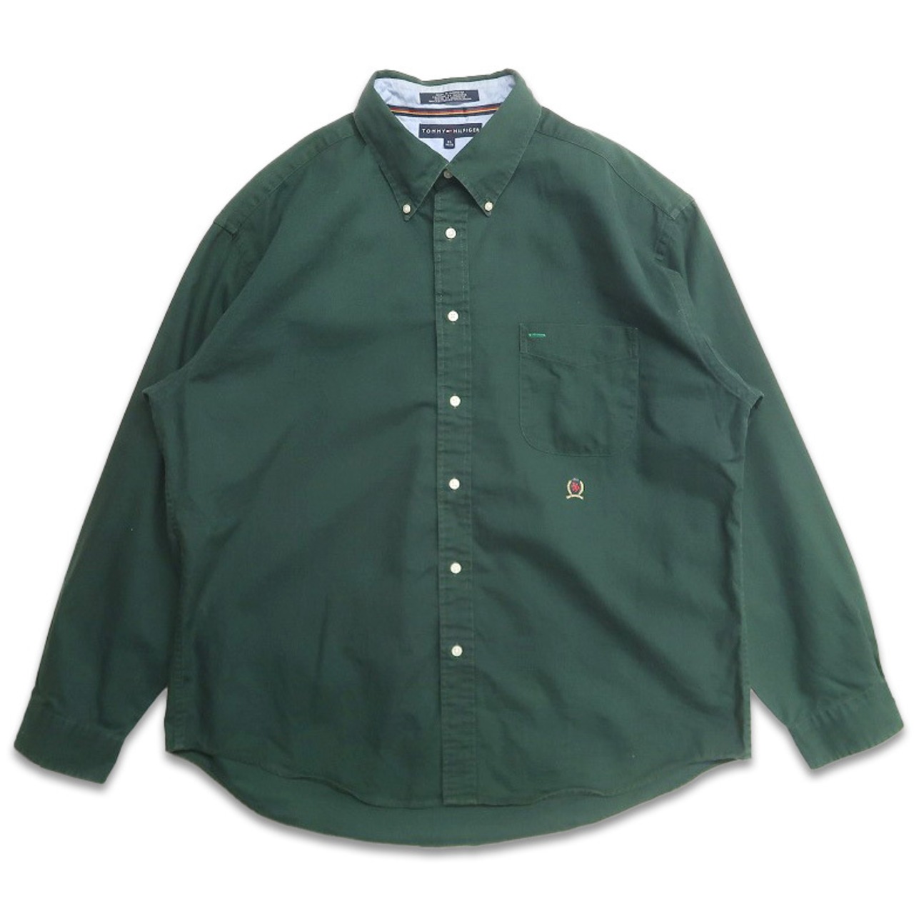 古着 TOMMY トミーヒルフィガー ボタンダウンシャツ 長袖 グリーン 表記:XL gd402186n w40404