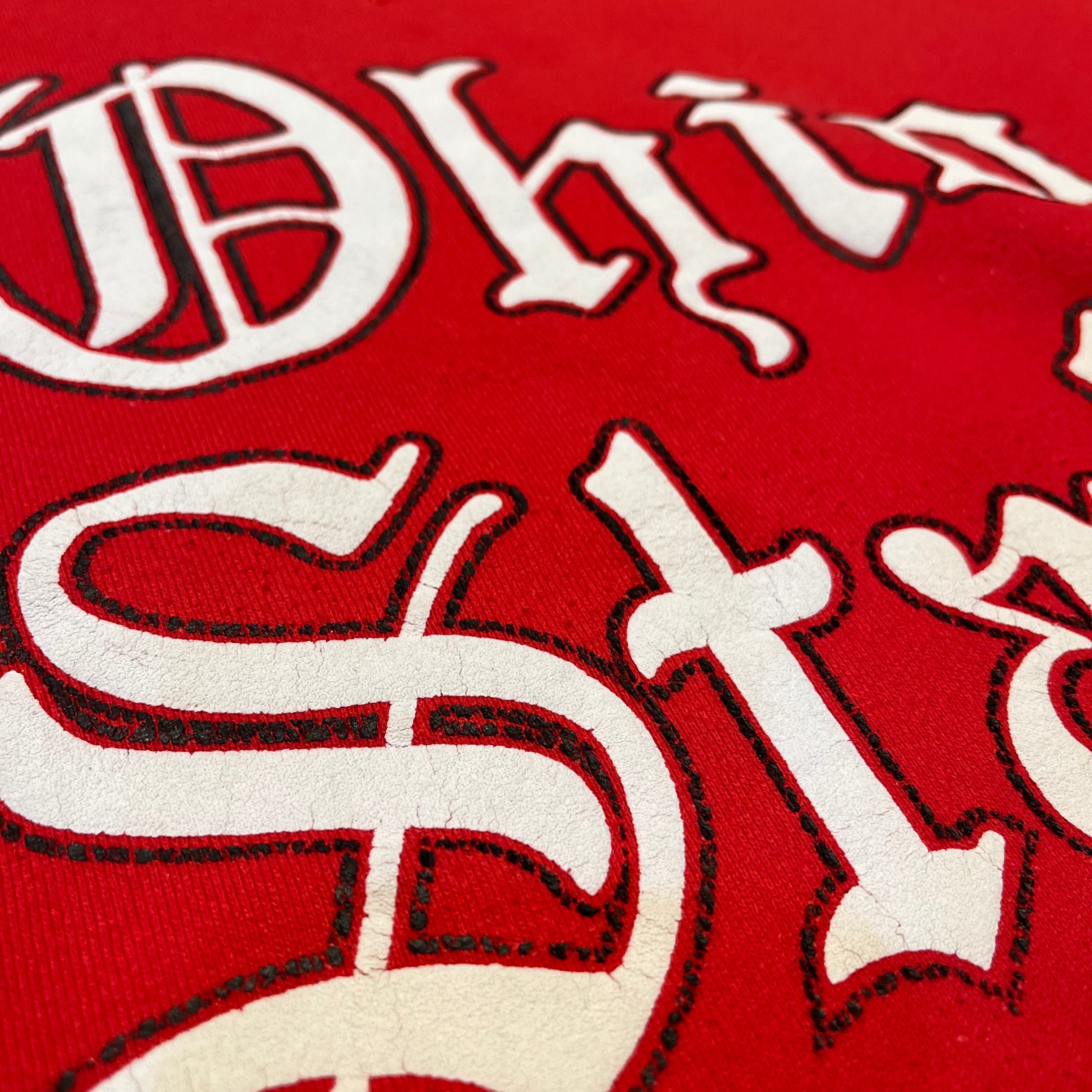 商品説明 :90年代のラッセルアスレチックのスウェットになります。スウェットで人気のWhio大学の個体で、両面のプリントが目を引く1着です。