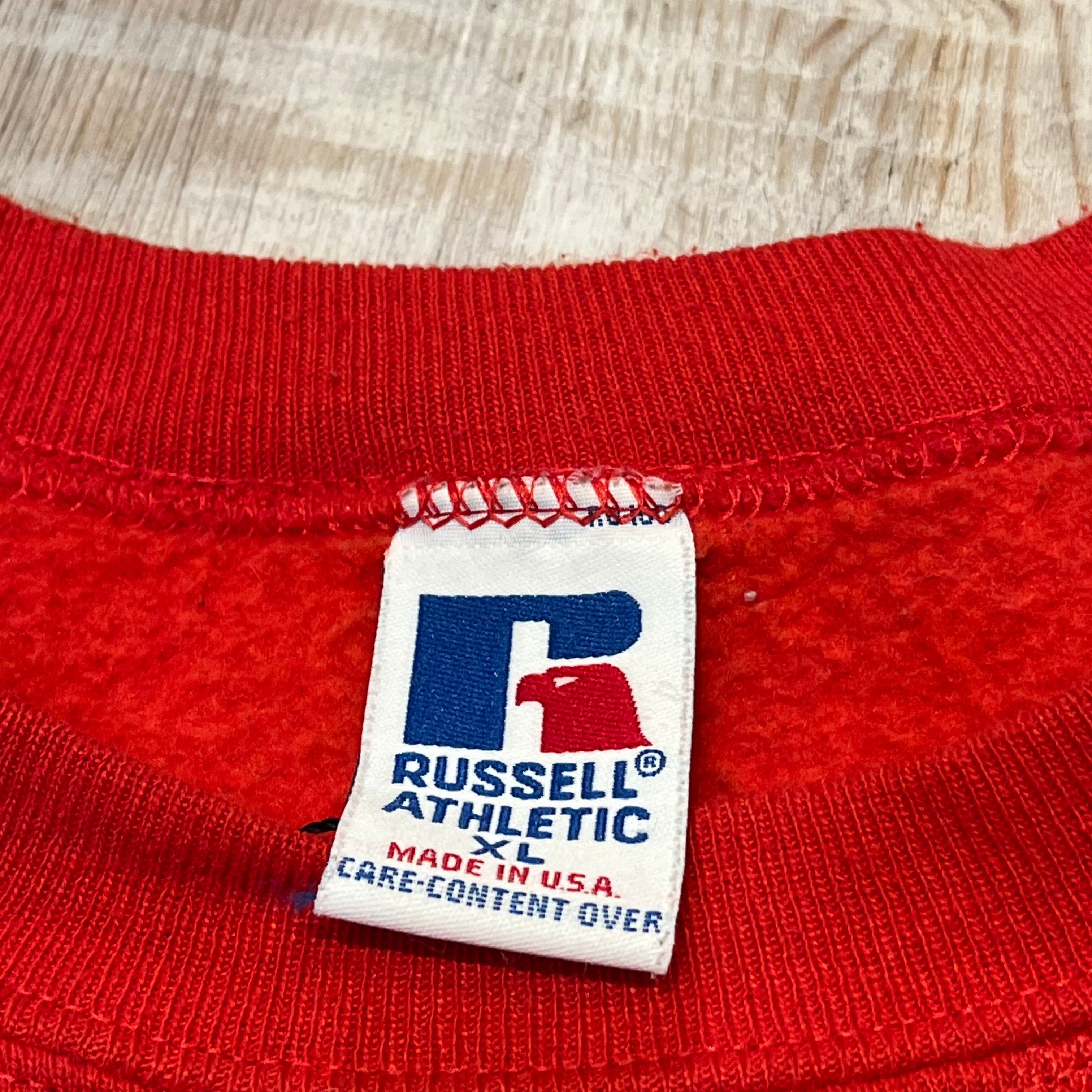 USA製 90年代 “XL” Russell Athletic プリントスウェット 両面 カレッジ 赤 レッド 古着 古着屋 高円寺 ビンテージ n40416