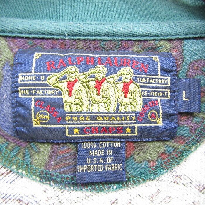 古着 80年代〜 USA製 チャップスラルフローレン CHAPS RALPH LAUREN 長袖ポロシャツ ペイズリー 総柄 表記:L gd402328n w40418