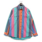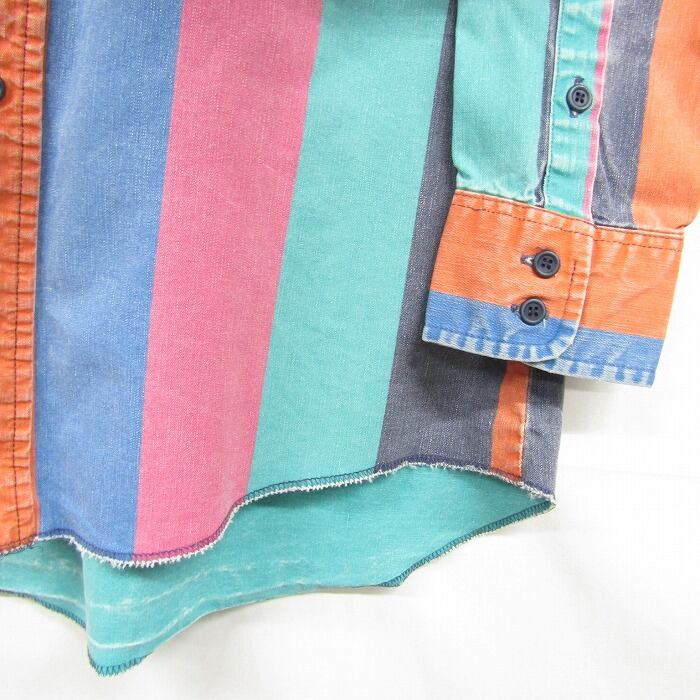 古着 80年代〜 ラングラー Wrangler マルチカラー ストライプシャツ 長袖シャツ 表記:16 1/2-34 gd402330n w40418