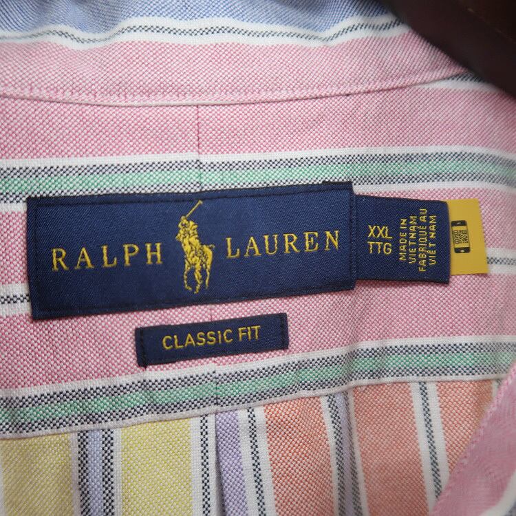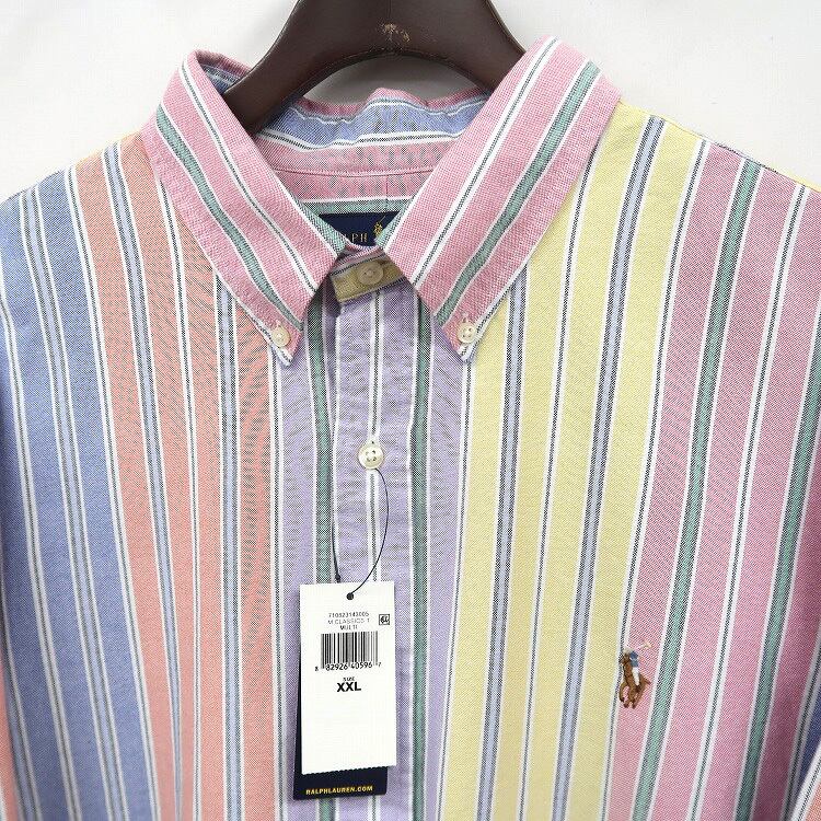 古着 ラルフローレン Ralph Lauren ボタンダウンシャツ ワンポイント 長袖シャツ マルチカラー ストライプ 表記:XXL gd402358n w40421