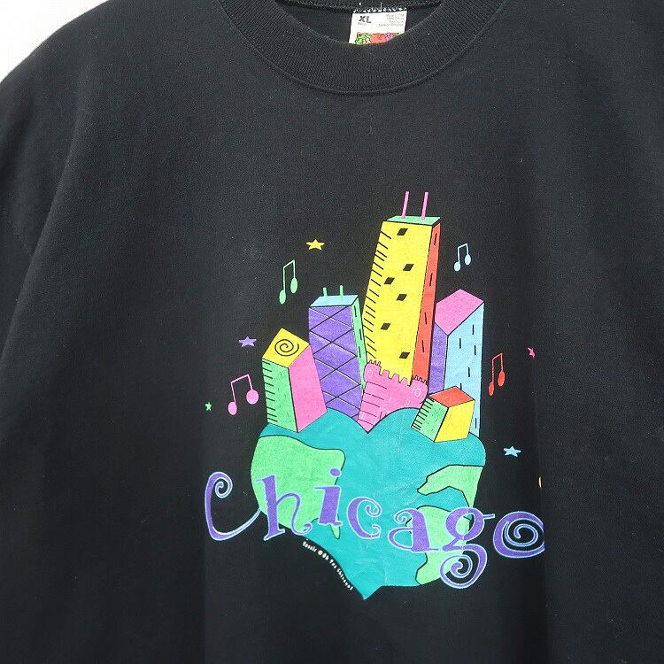 古着 90年代 USA製 フルーツオブザルーム プリントTシャツ ブラック 表記:XL gd402367n w40422