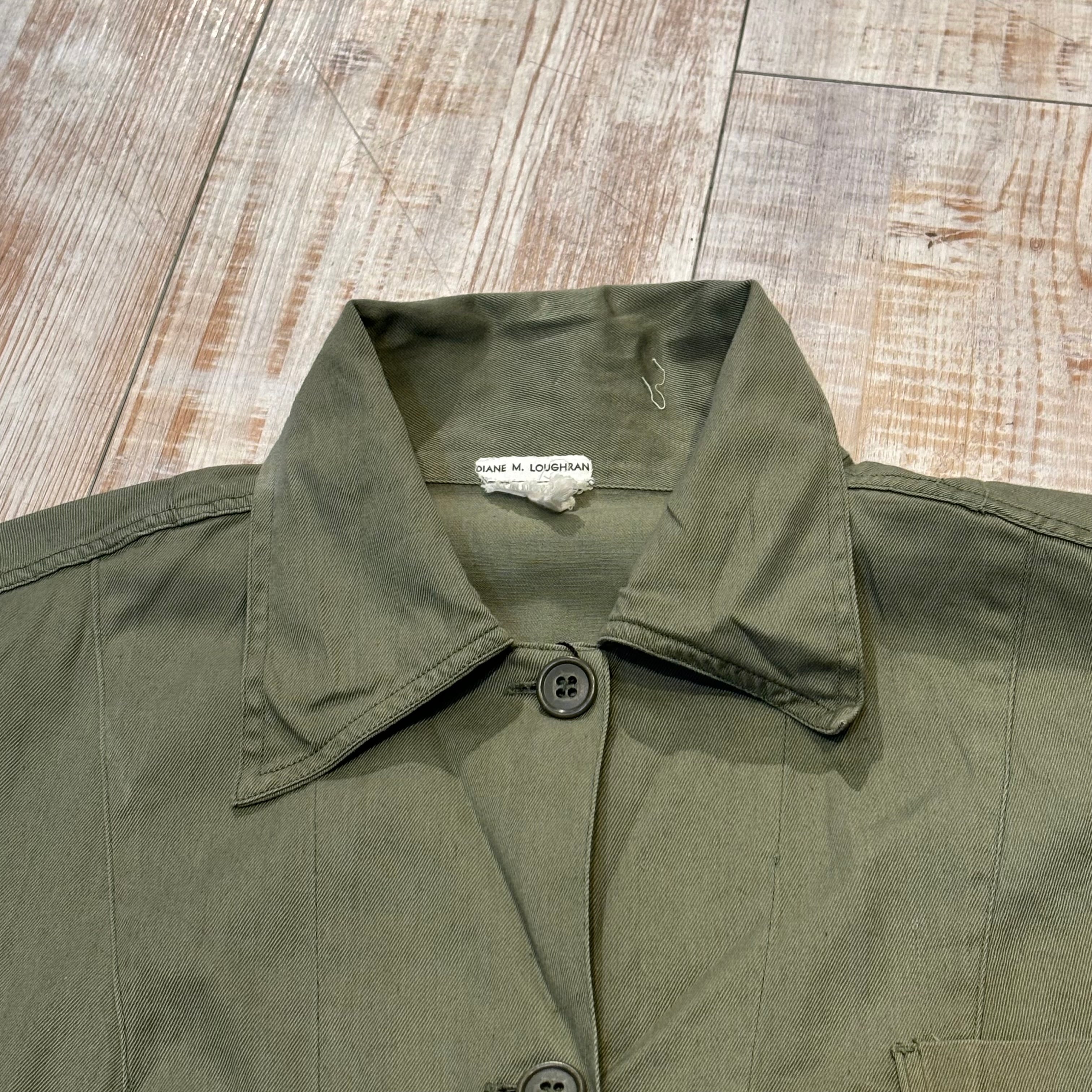 非常に珍しい女性兵士用のジャケットで通常P-41はHBT仕様なのですが、こちらはコットンポプリン仕様。また、ボタンも平ボタン、ボタンの合わせも通常と逆になっています。