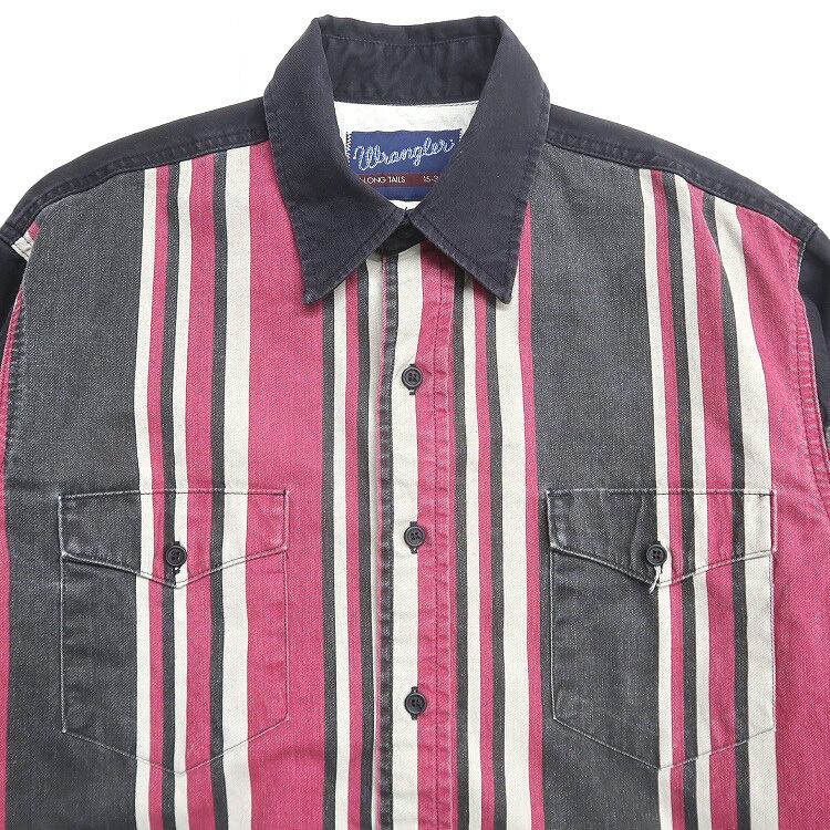 古着 80年代〜 ラングラー Wrangler ストライプシャツ 長袖シャツ 表記:15-33 S gd402405n w40426