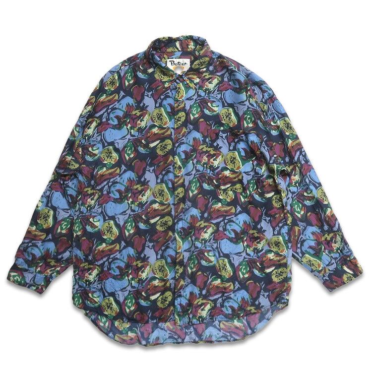 古着 90年代 PNOTEST 総柄 シルクシャツ 長袖シャツ 表記:L gd402496n w40505