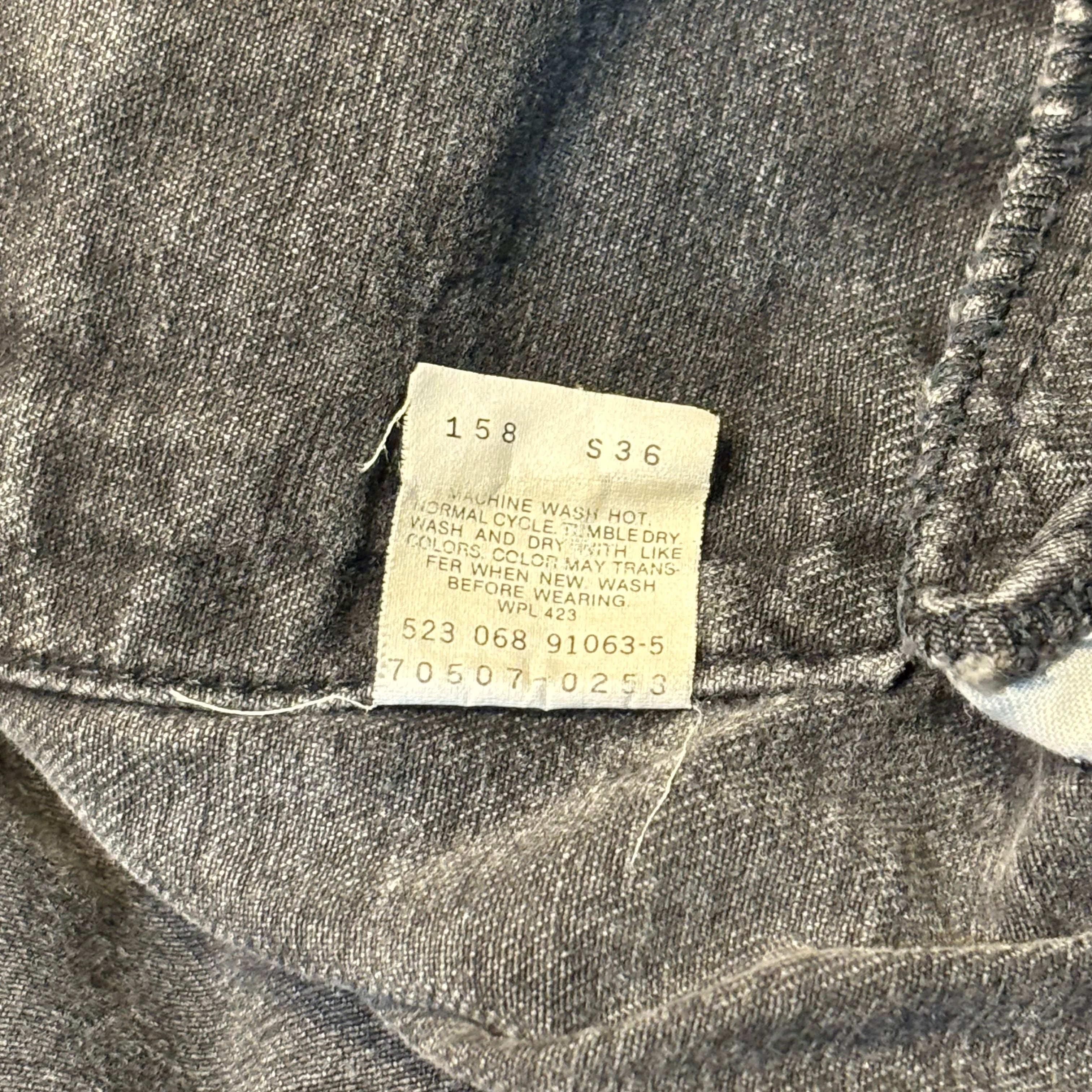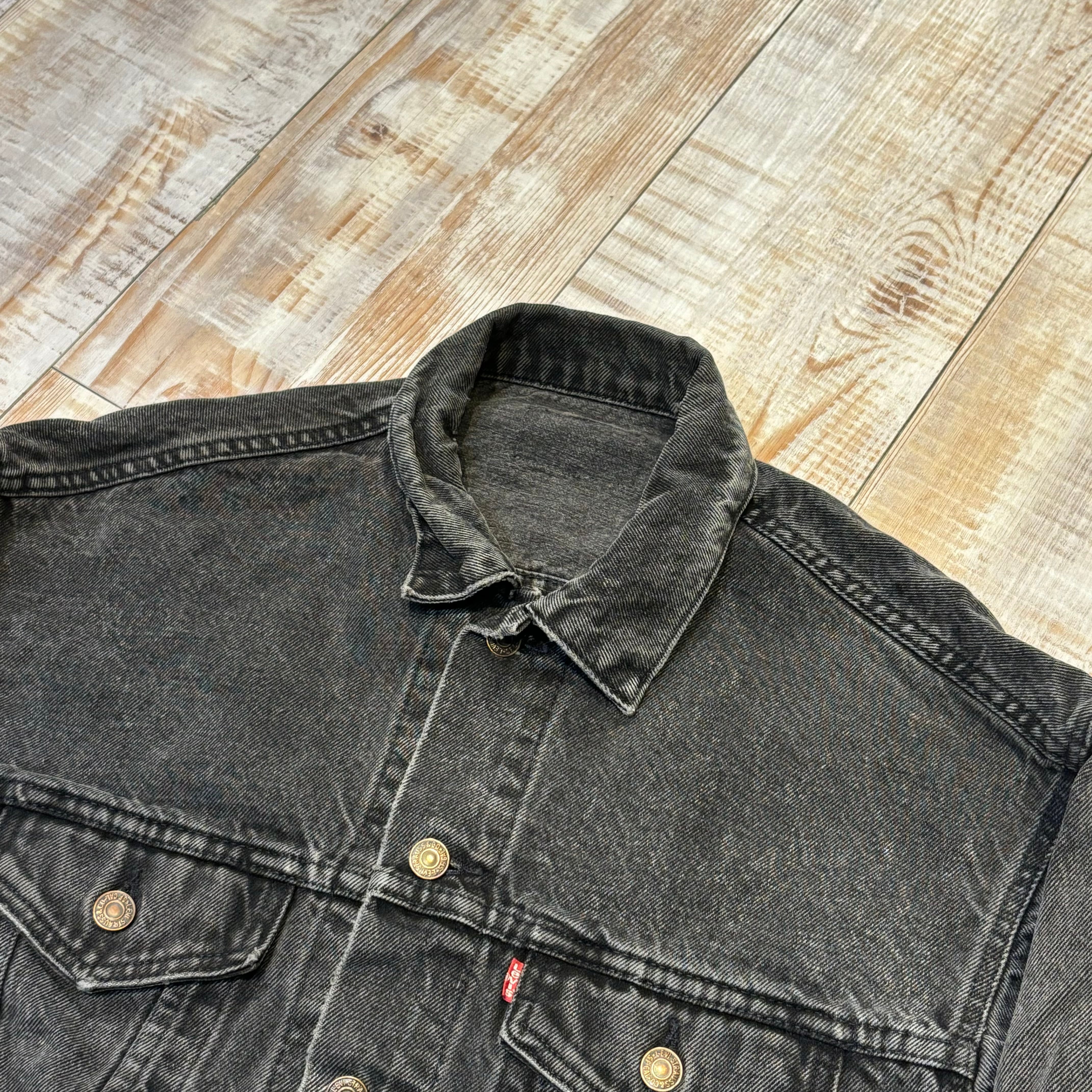 商品説明 :アメリカ製90年代リーバイス70507のブラックデニムジャケットになります。昨今人気の高いブラックデニムジャケット。こちらは後染めで良いフェードをした個体。70507は、身幅広く4つポケット仕様が魅力のおすすめの1着。