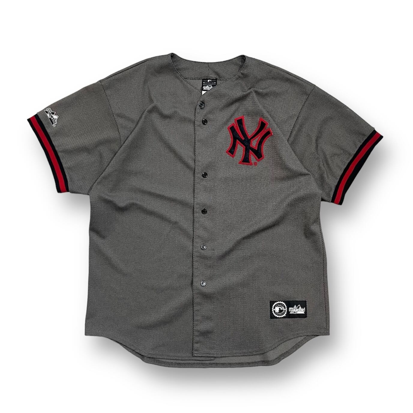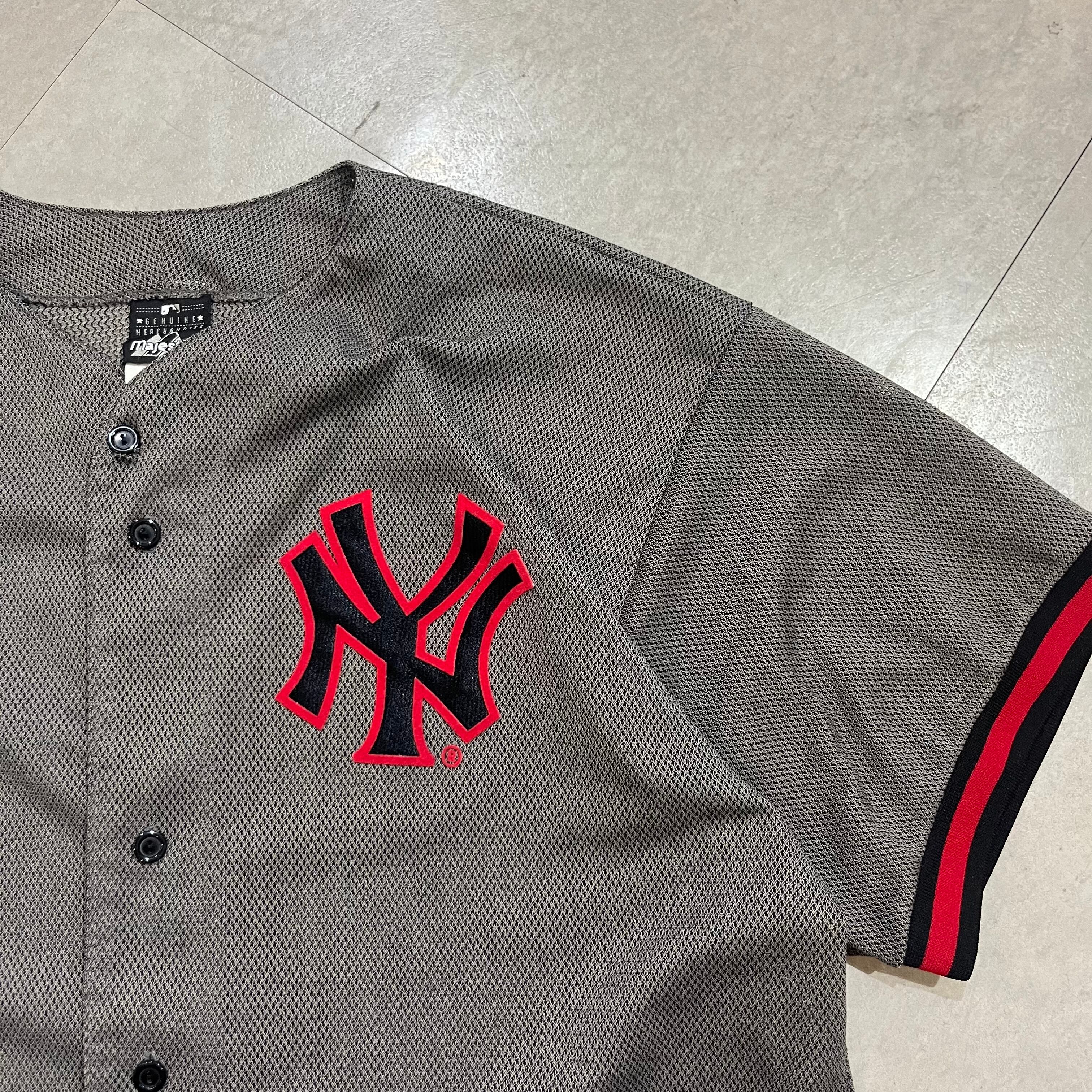 USA製 size:XL 【 New York Yankees 】ベースボールシャツ ゲームシャツ ニューヨークヤンキース メッシュ グレー 古着 古着屋 高円寺 ビンテージ n40521