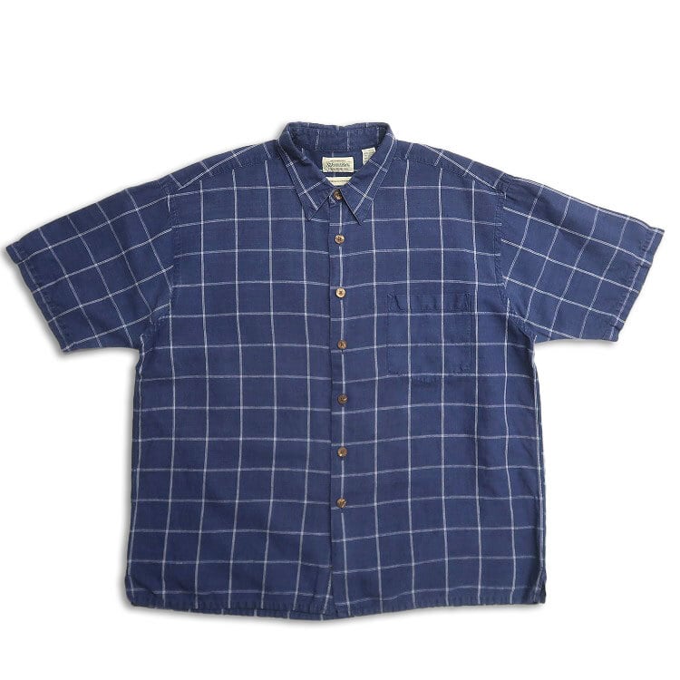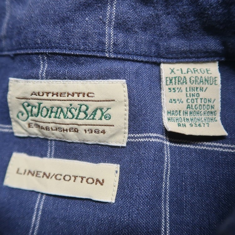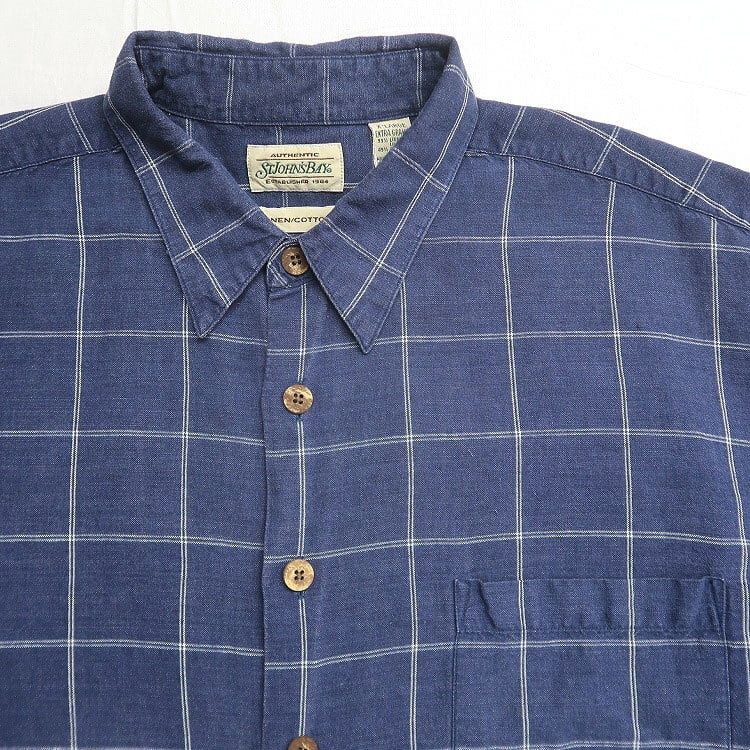 古着 90年代〜 STJOHN'SBAY セントジョンズベイ リネン コットン 半袖シャツ ネイビー 表記:XL gd402659n w40521