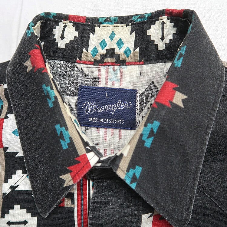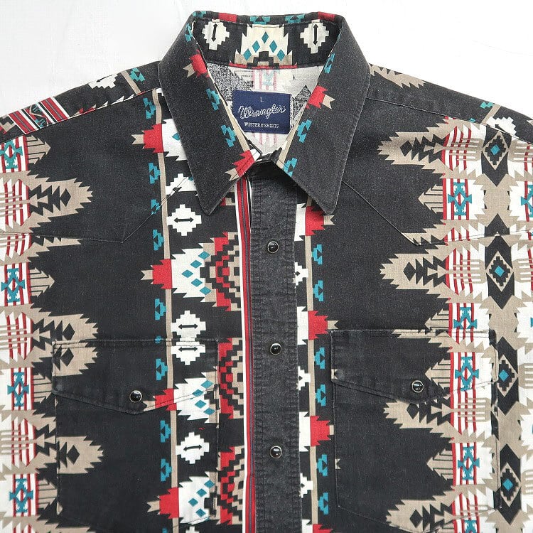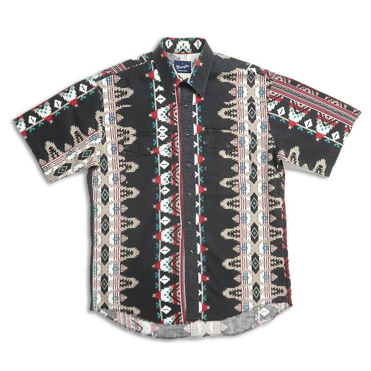 古着 90年代 ラングラー Wrangler ウエスタンシャツ 半袖シャツ 総柄 ネイティブ柄 表記:L gd402715n w40527