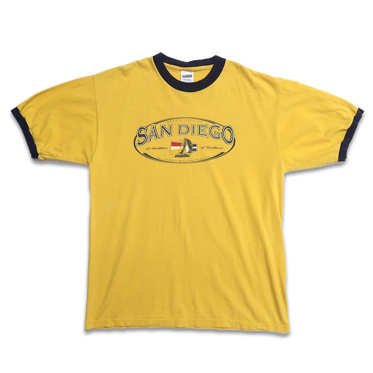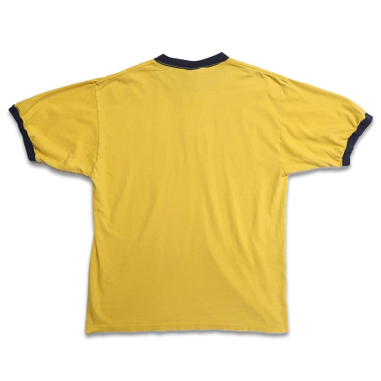 古着 PERRIN プリント リンガーTシャツ イエロー ネイビー 表記:L gd402741n w40530