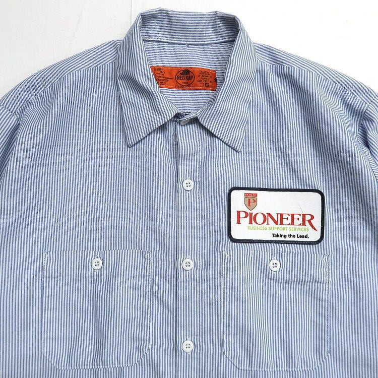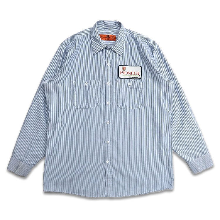 古着 RED KAP レッドキャップ ストライプ ワークシャツ 長袖シャツ ワッペン 表記:L gd402744n w40530