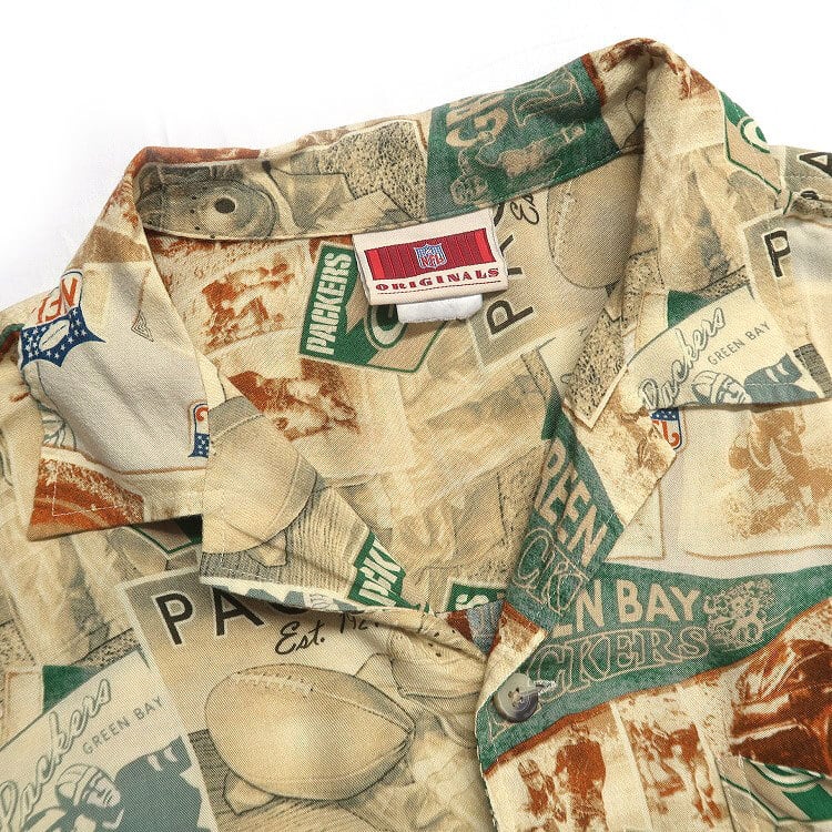 古着 NFL ORIGINALS グリーンベイパッカーズ 総柄 レーヨン 半袖シャツ 表記:-- gd402766n w40601 | 古着屋SLAT オンラインショップ 【古着通販】|東京 高円寺 レギュラー・ヴィンテージ古着