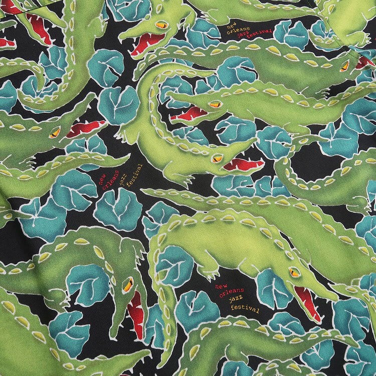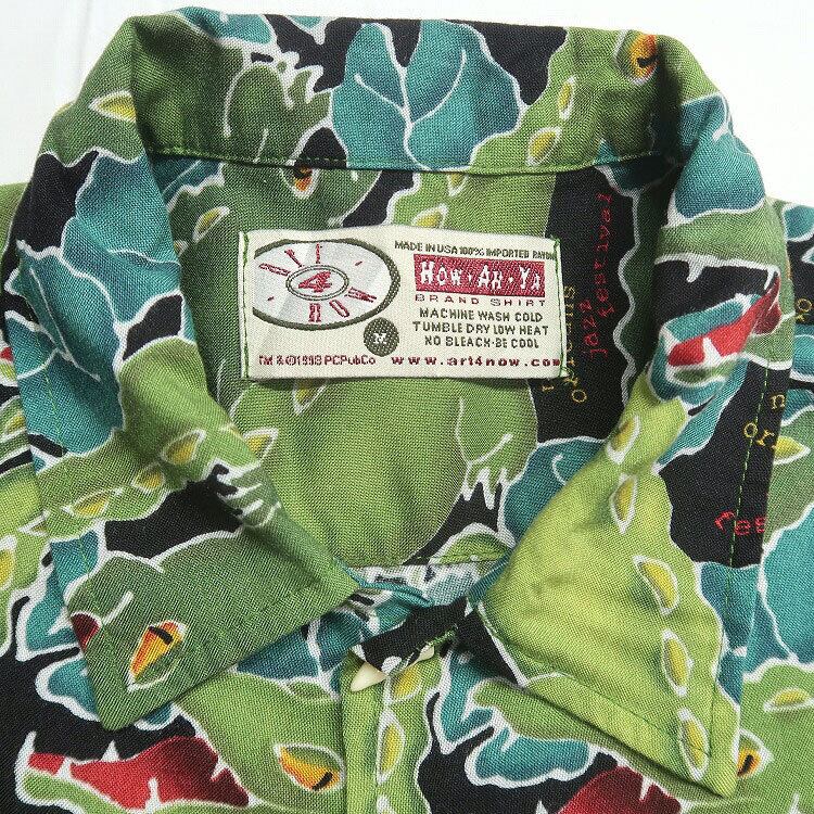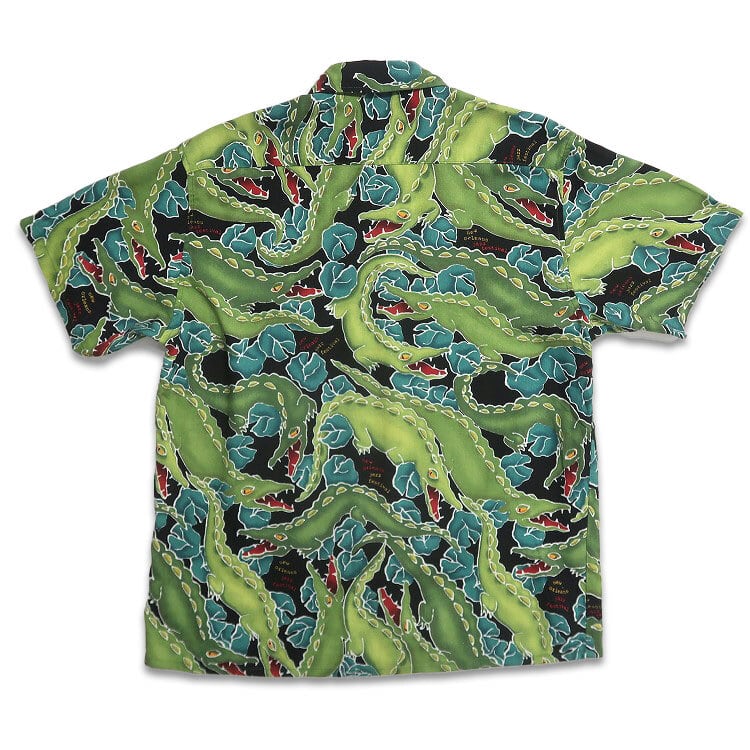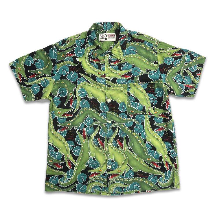 古着 USA製 90年代 HOW・AH・YA 総柄 レーヨン 半袖シャツ アロハシャツ ハワイアンシャツ ワニ 表記:M gd402767n w40601