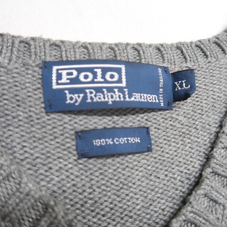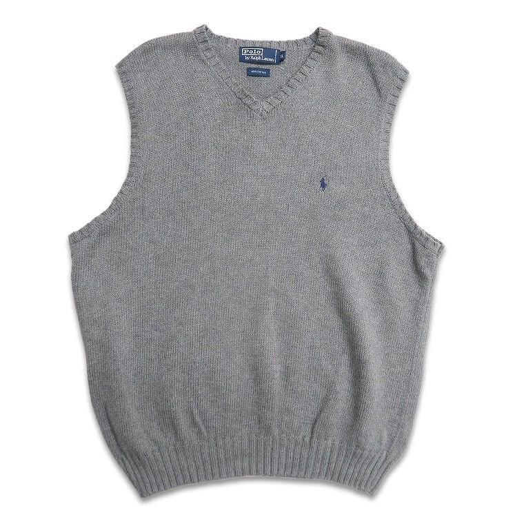 古着 90年代〜 ラルフローレン Polo Ralph Lauren コットンニット ベスト セーター ワンポイント グレー 表記:XL gd402789n w40603