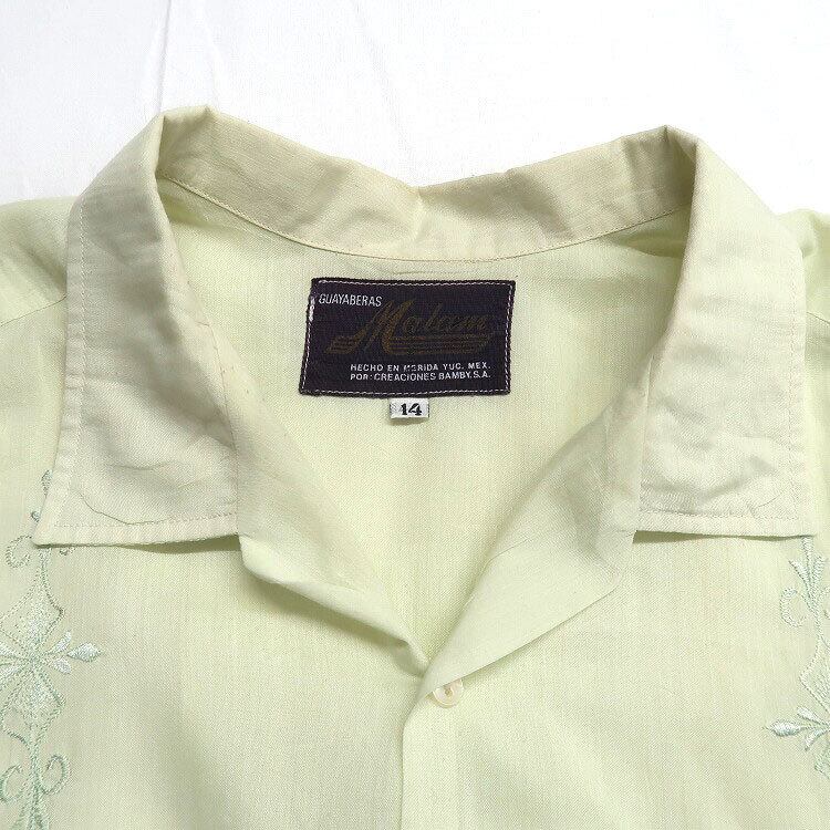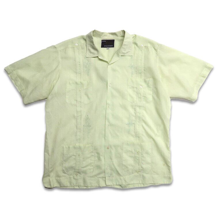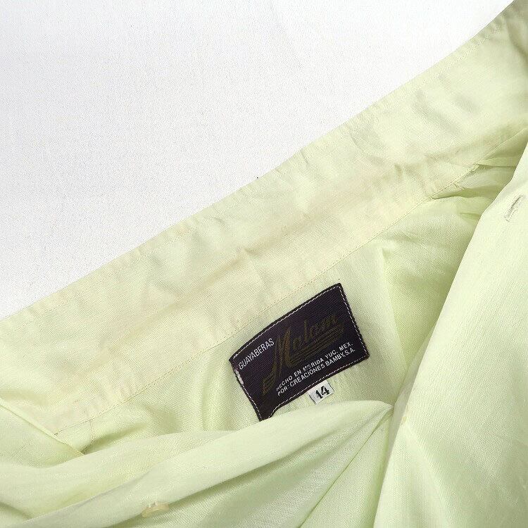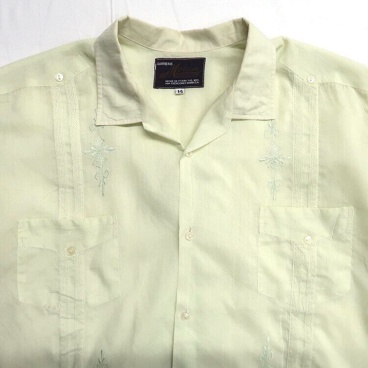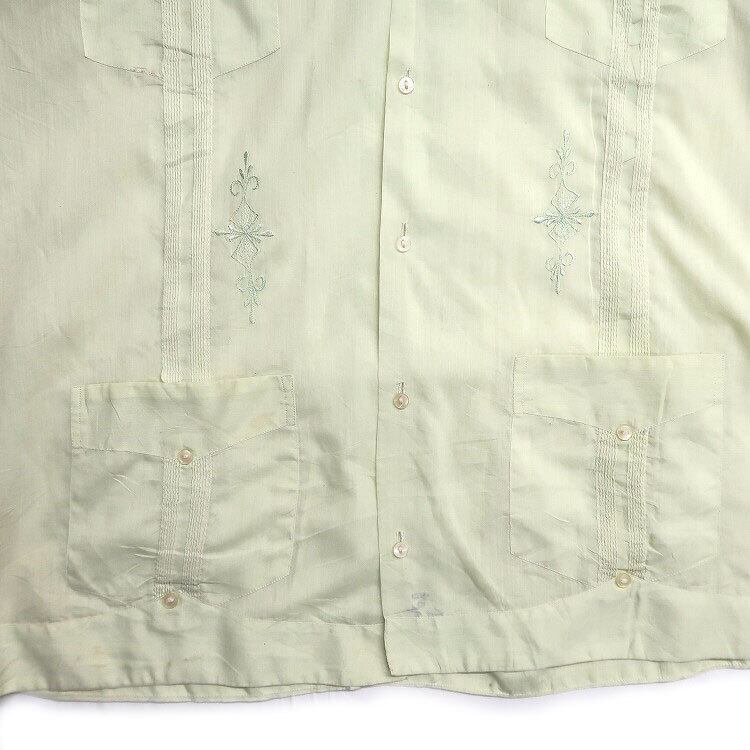 古着 GUAYABERAS Malam キューバシャツ 半袖シャツ ボックスシャツ 4ポケット ライトグリーン 表記:14 gd402817n w40606