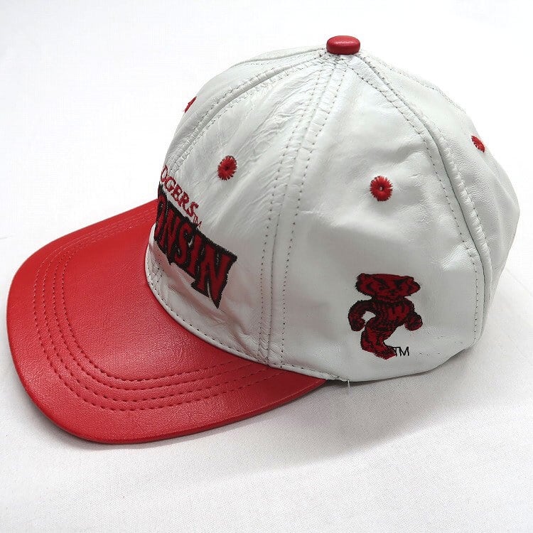 古着 USA製 BADGERS WISCONSIN カレッジ アメフト レーザー キャップ 刺繍 レッド ホワイト 表記:-- gd402850n w40609