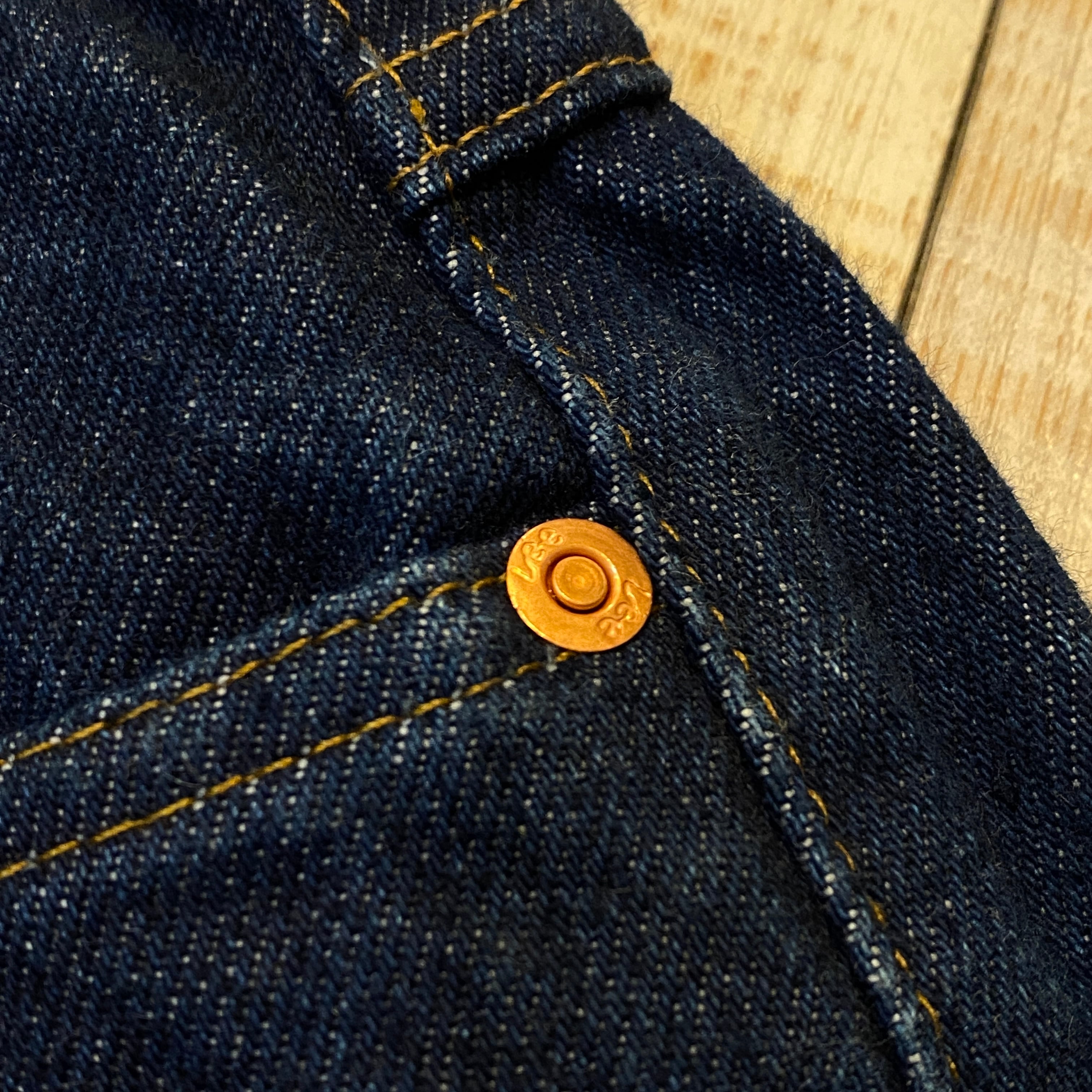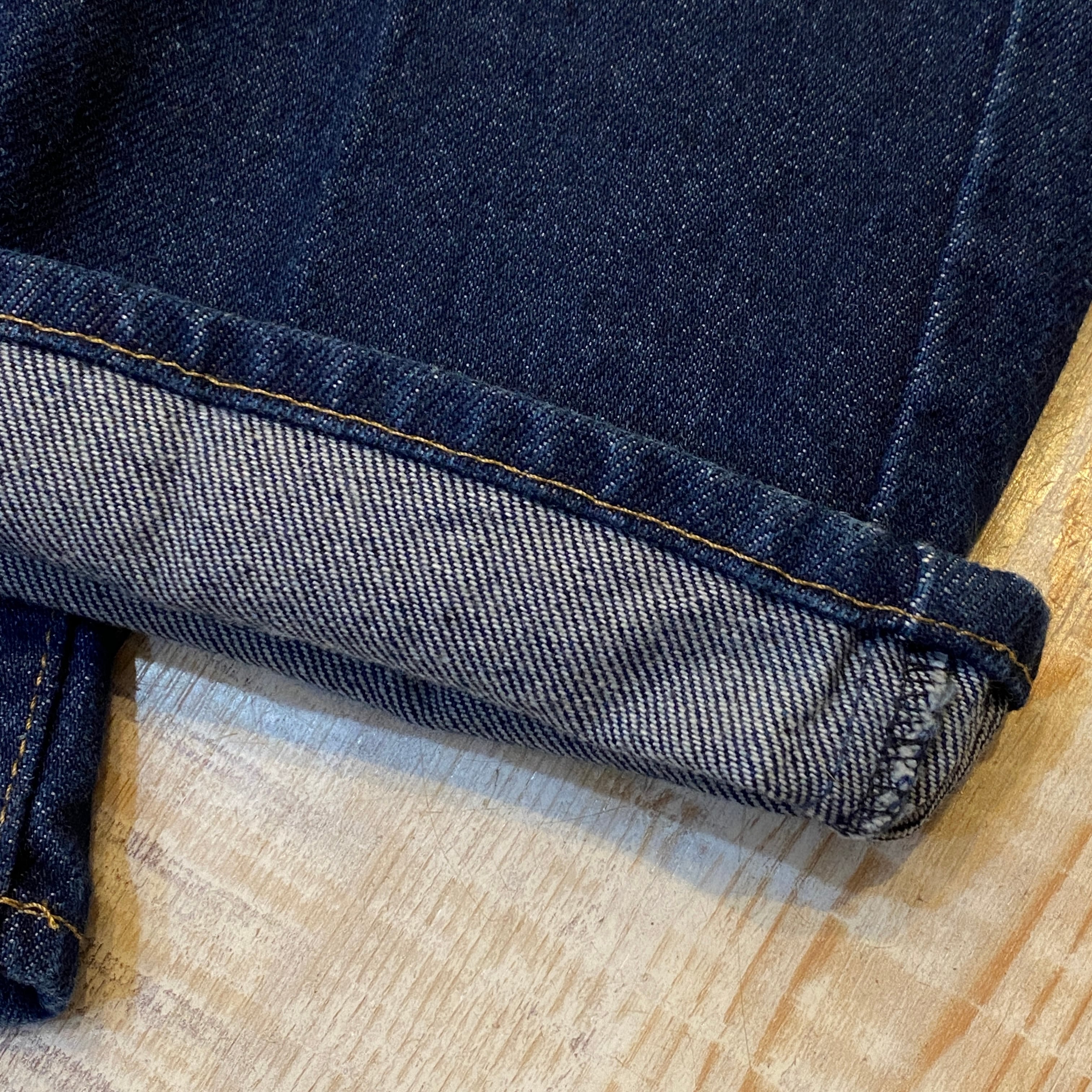 ほぼ色落ちの見られない濃紺インディゴ。