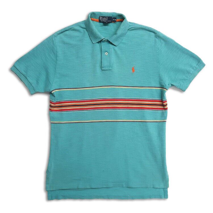 古着 ラルフローレン Ralph Lauren 半袖ポロシャツ ワンポイント ボーダー 鹿の子 表記:M gd402875n w40612
