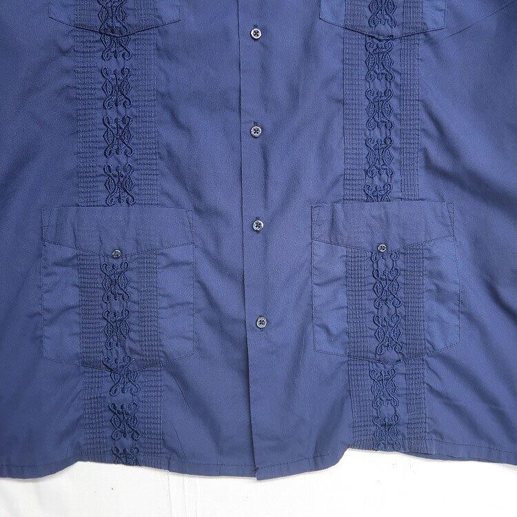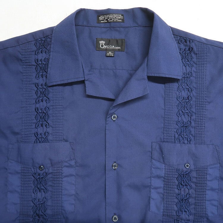 古着 OMEGA fashion キューバシャツ 半袖シャツ ボックスシャツ ネイビー 4ポケット ネイビー 表記:XL 17-17 1/2 gd402877n w40612