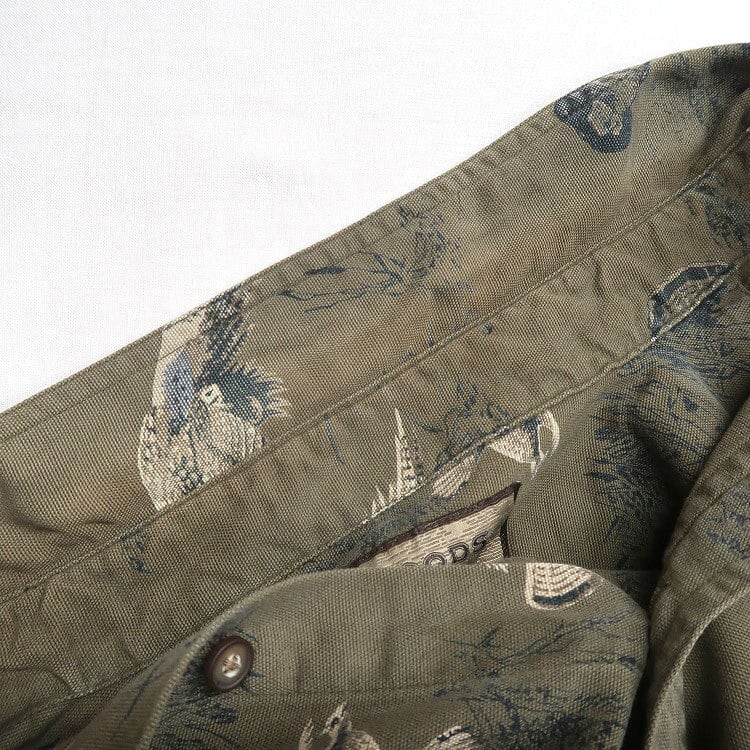 古着 WOODS & WATER 総柄 長袖シャツ キジ柄 アニマル柄 オリーブグリーン 表記:L gd402887n w40613 | 古着屋SLAT オンラインショップ 【古着通販】|東京 高円寺 レギュラー・ヴィンテージ古着