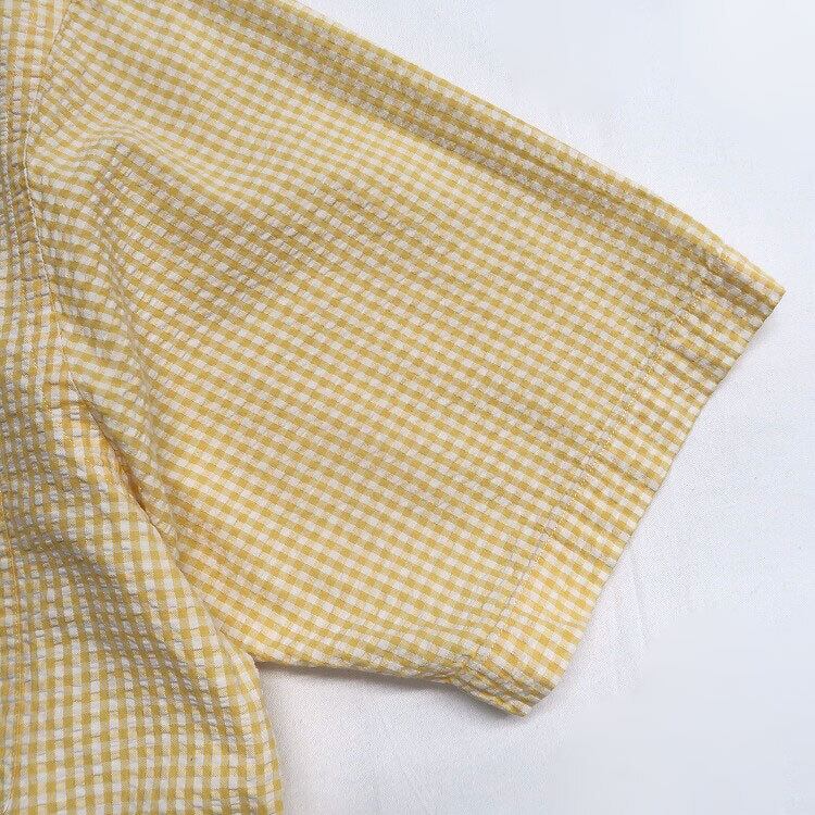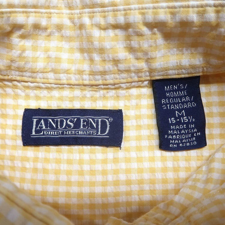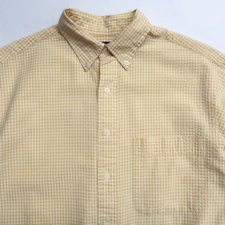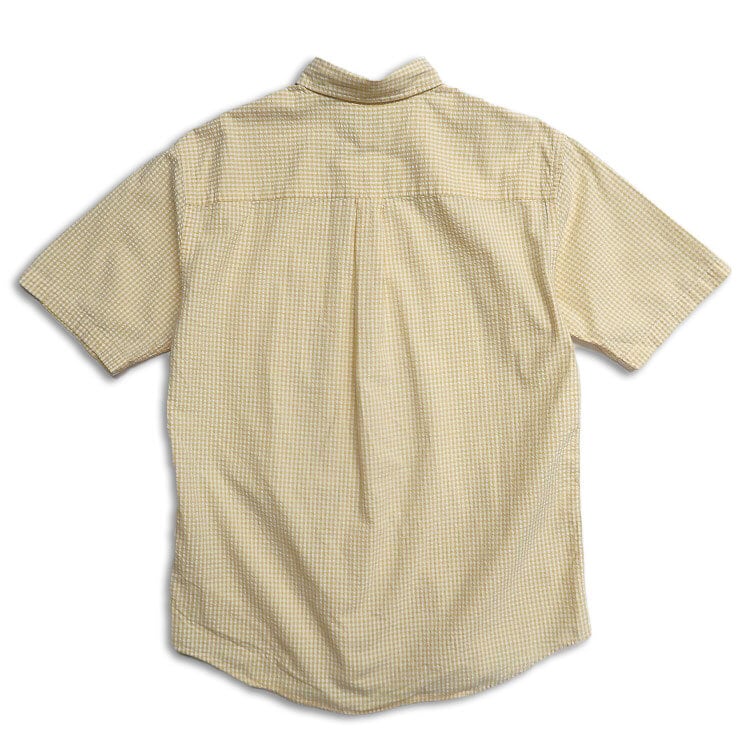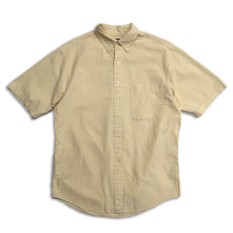 古着 ランズエンド LANDS’END シアサッカー 半袖シャツ ボタンダウンシャツ ギンガムチェック イエロー 表記:M 15-15 1/2 gd402946n w40619