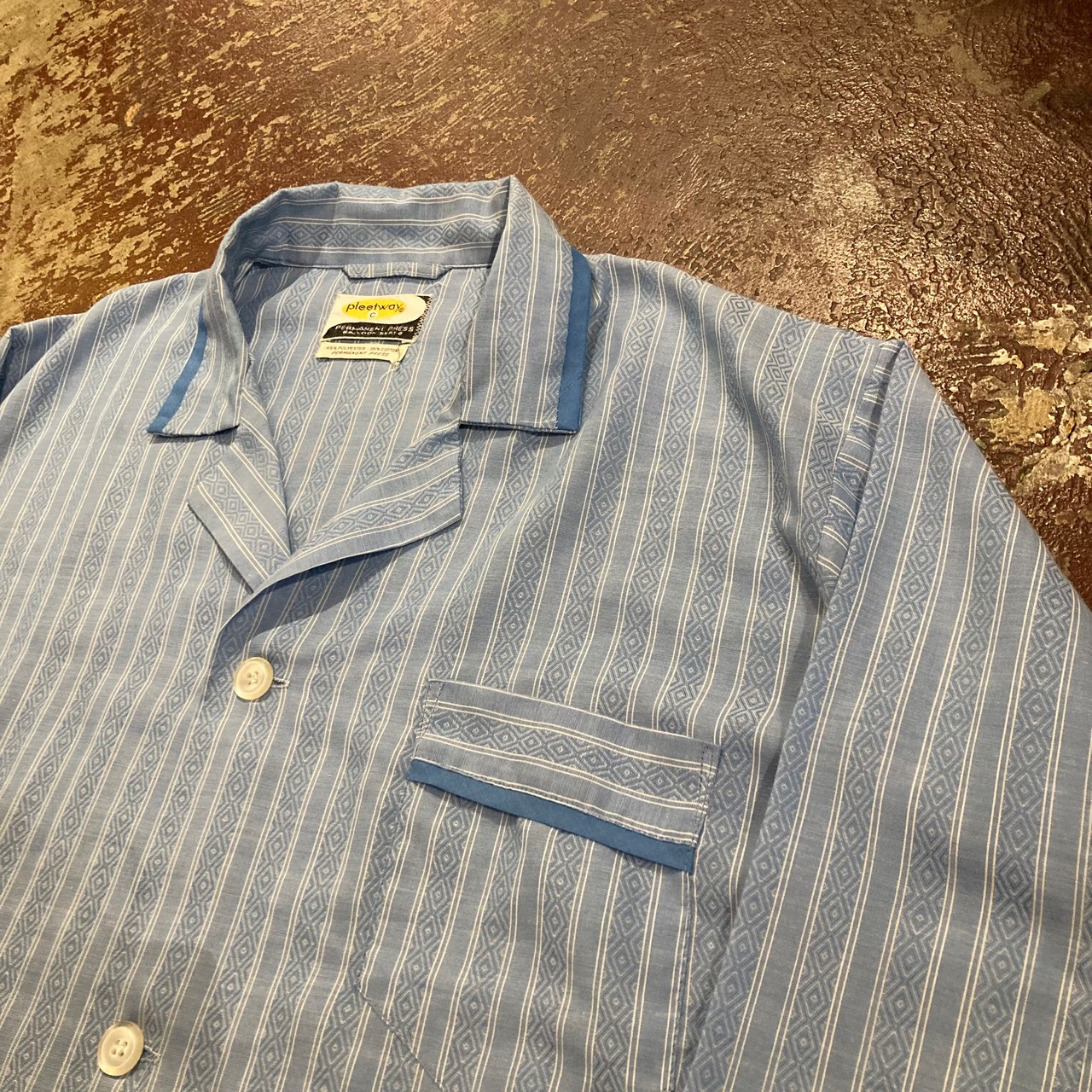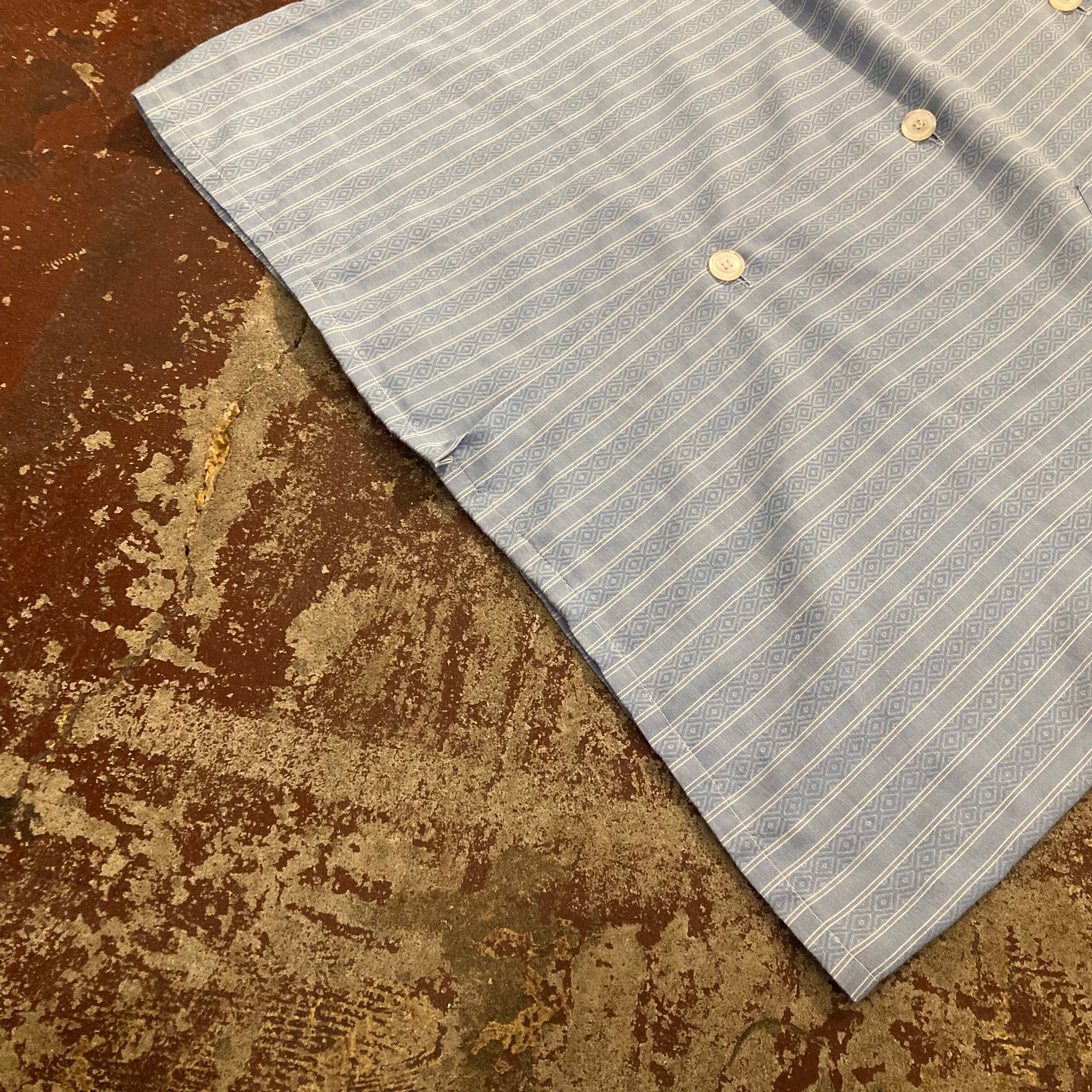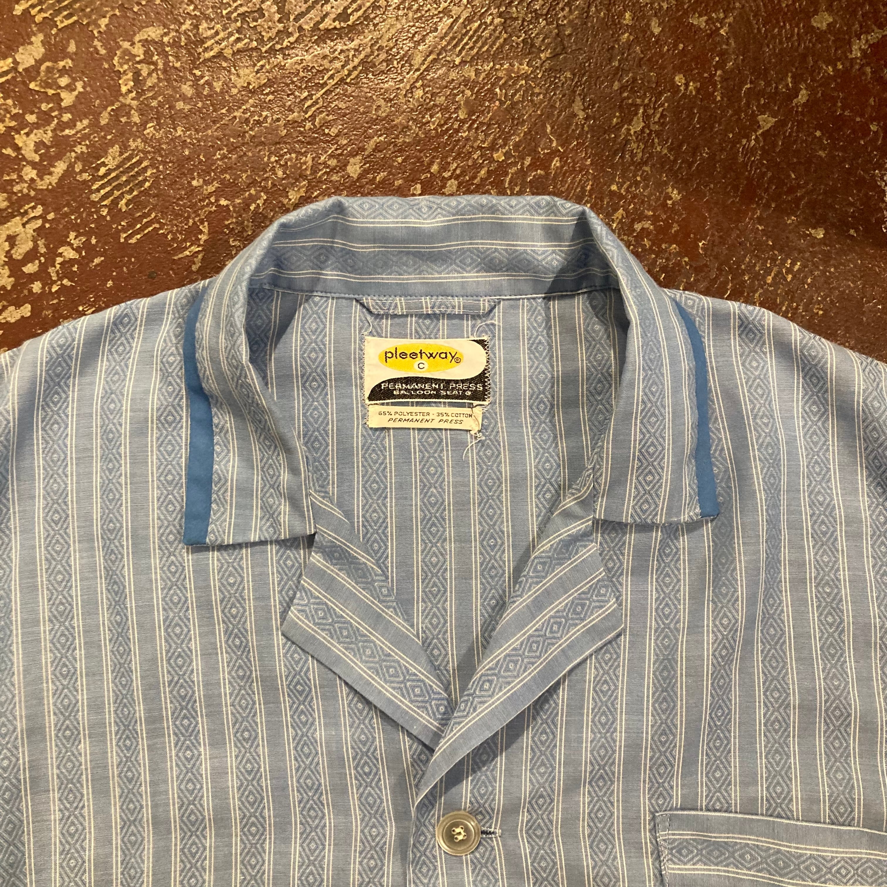 70年代『L程度』"pleetway" パジャマシャツ ヴィンテージシャツ 長袖シャツ ストライプシャツ 開禁シャツ 総柄 ストライプ 青 水色 白 古着 古着屋 高円寺 ビンテージ n40621