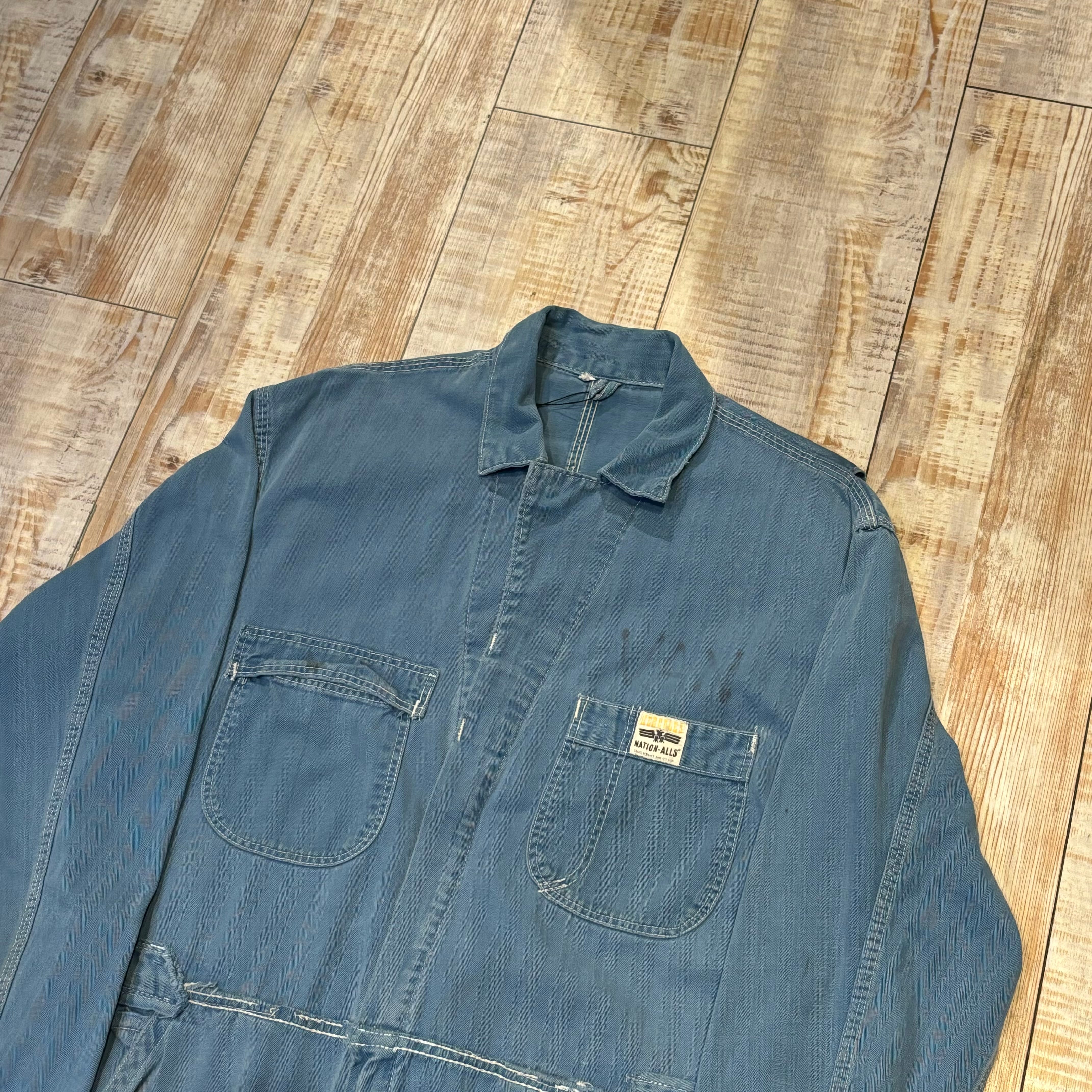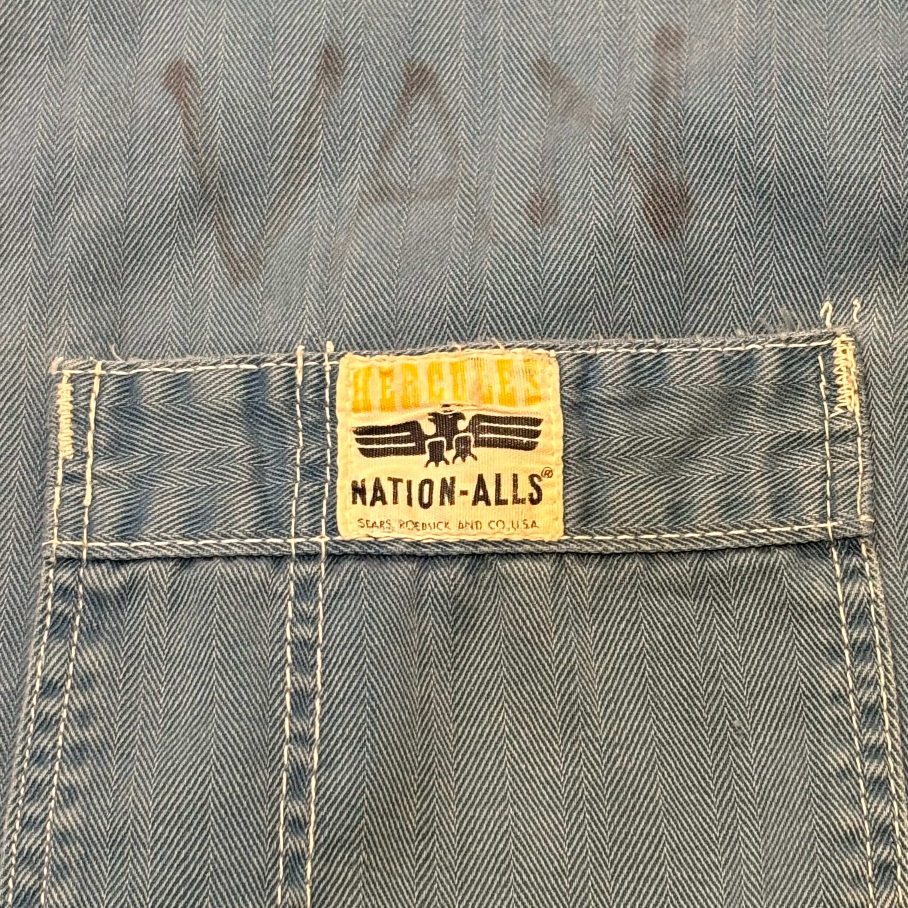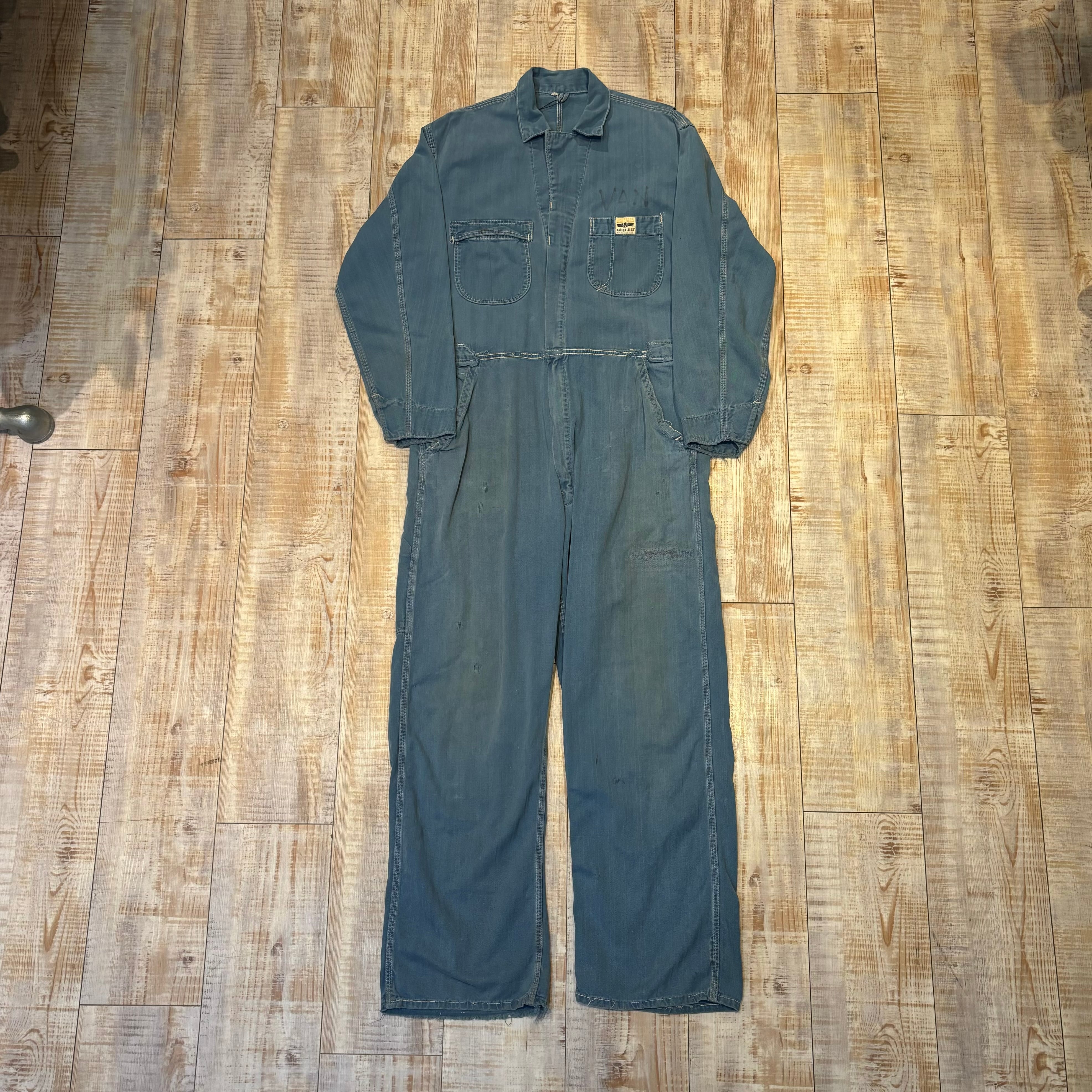 60年代 “L位” Hercules ヘラクレス オールインワン つなぎ ヘリンボーン 水色 ライトブルー 古着 古着屋 高円寺 ビンテージ n40623