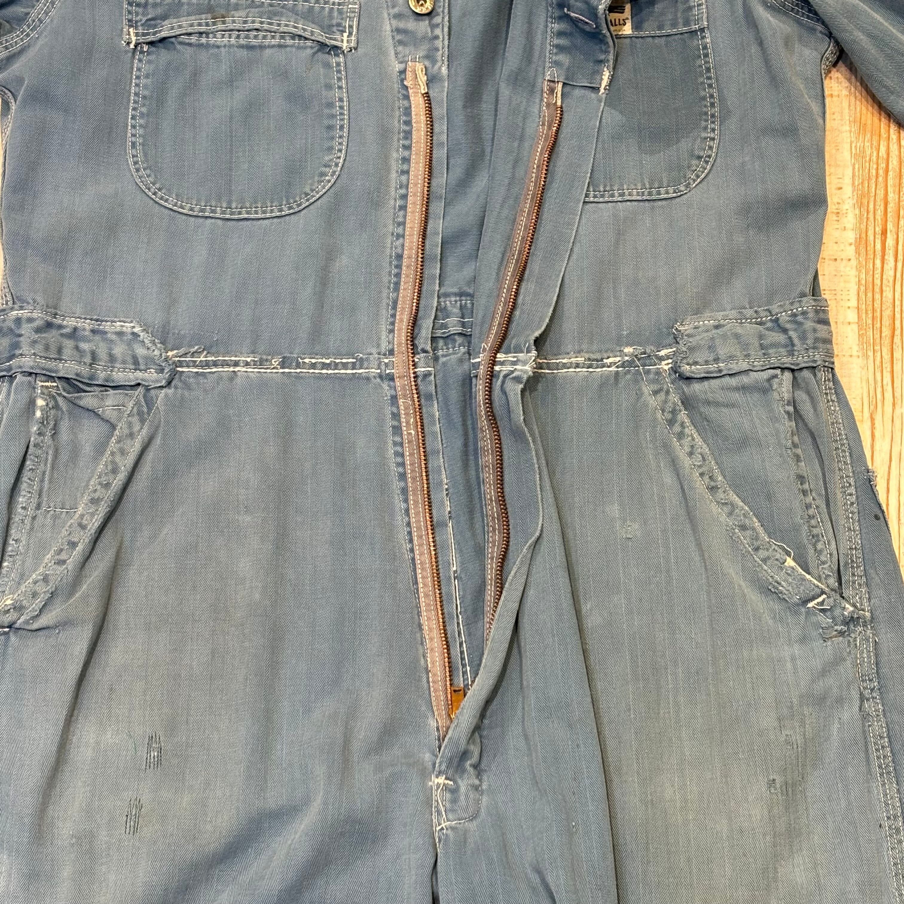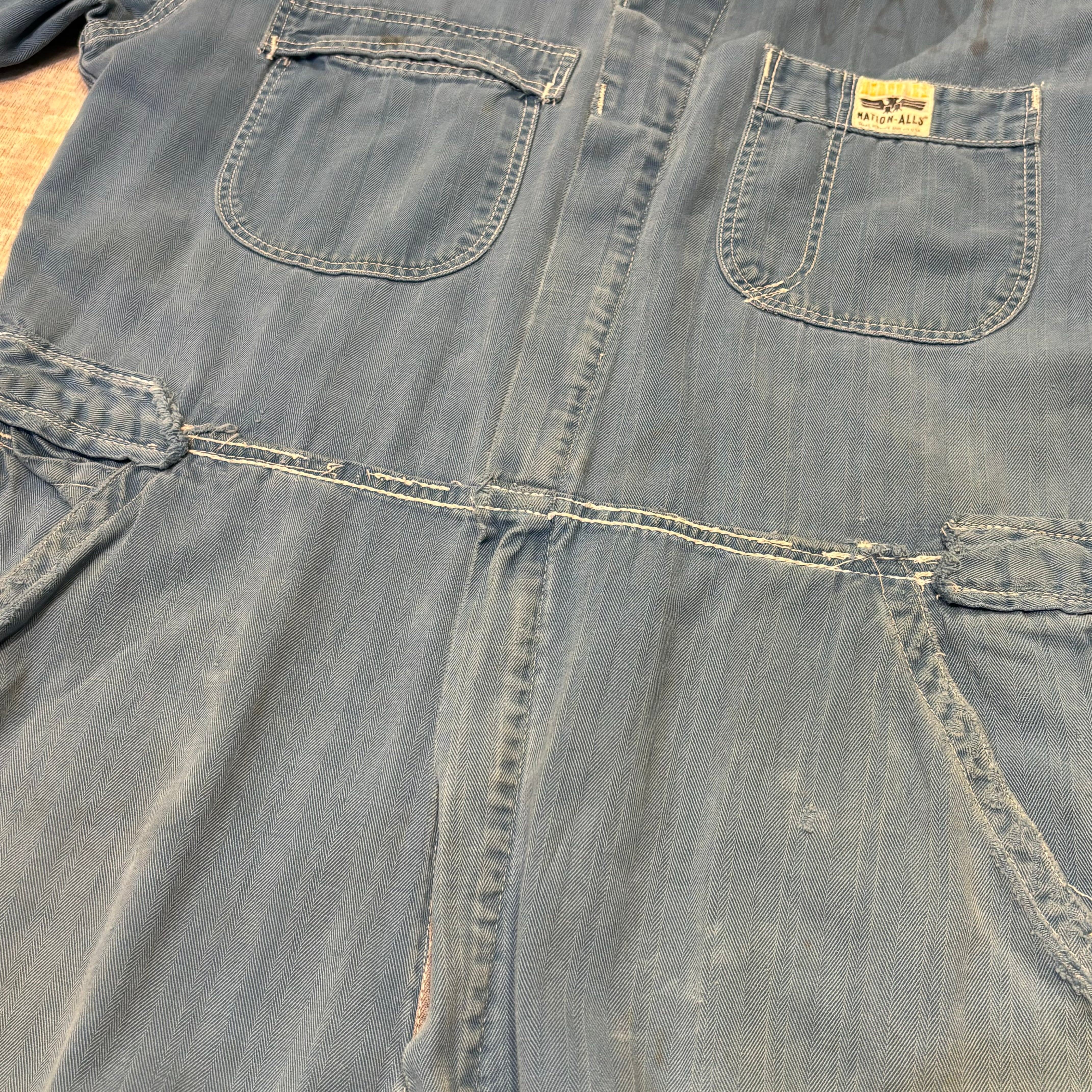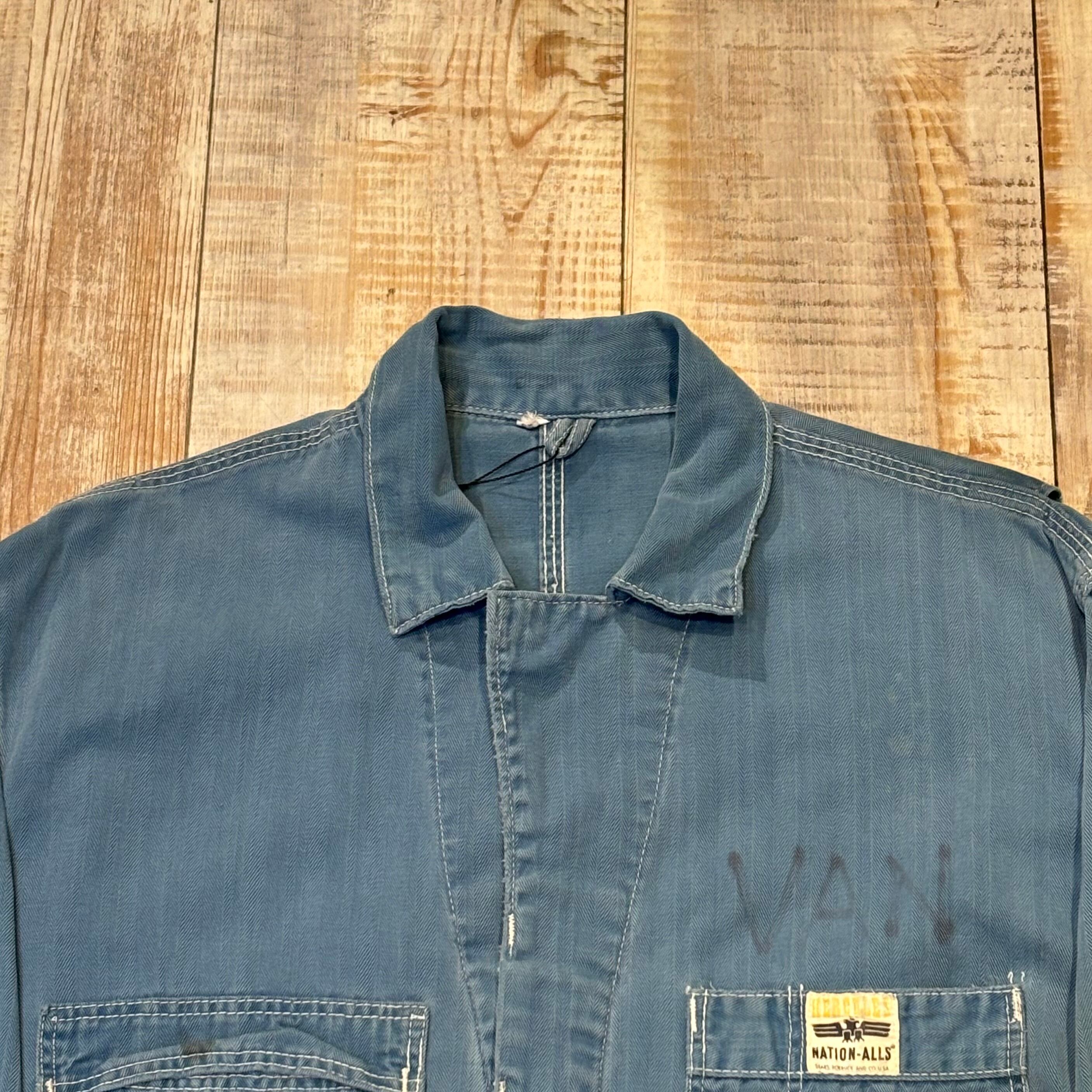 60年代 “L位” Hercules ヘラクレス オールインワン つなぎ ヘリンボーン 水色 ライトブルー 古着 古着屋 高円寺 ビンテージ n40623