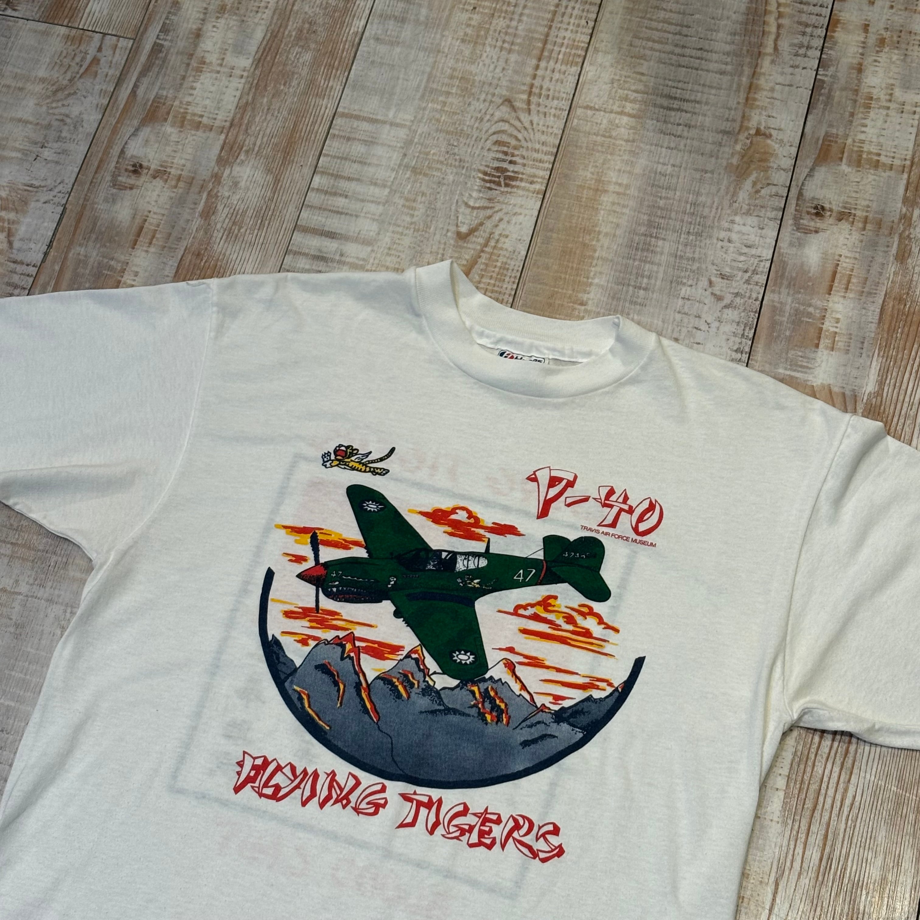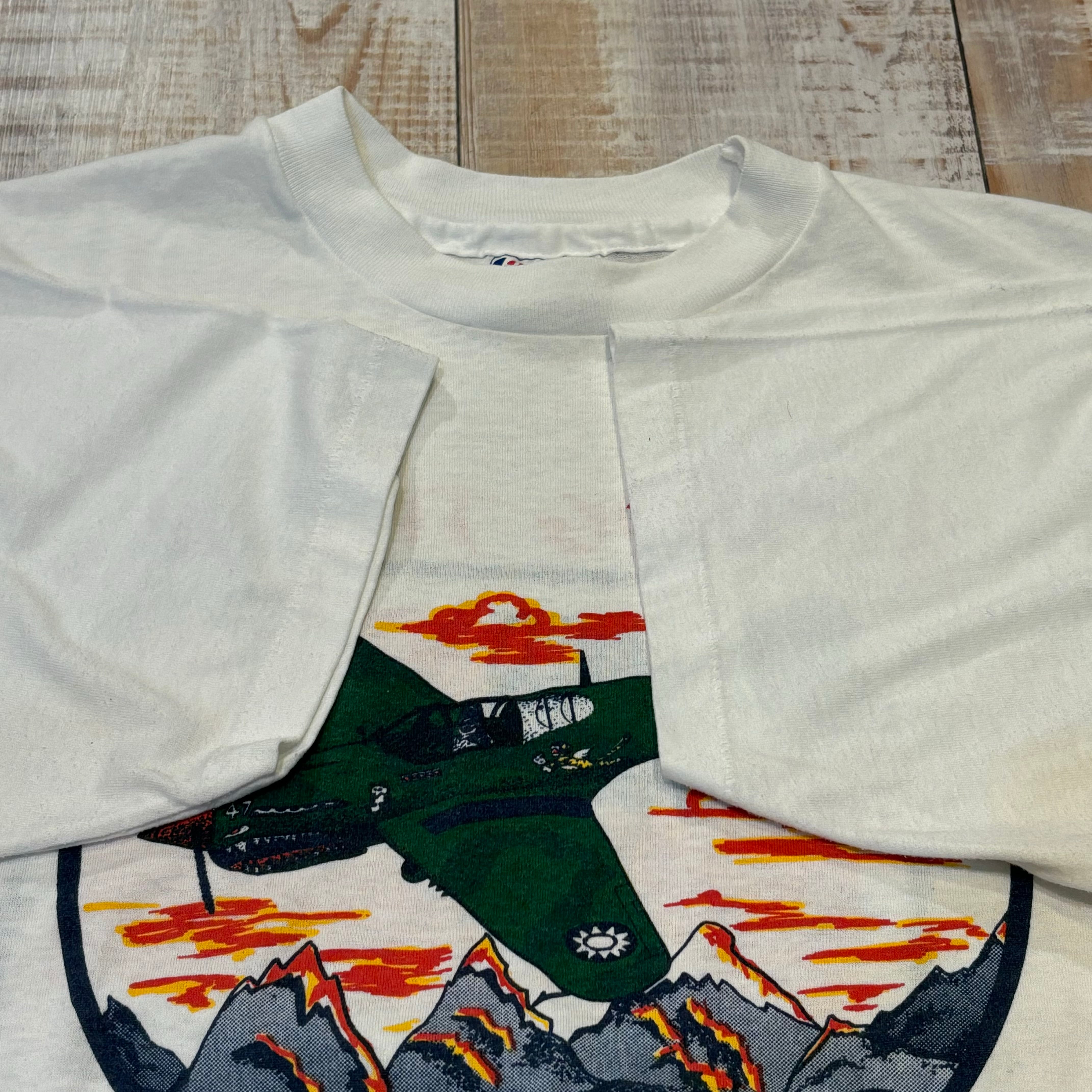 USA製 80年代 “L” Hanes ヘインズ プリントTシャツ フライングタイガース ブラッドチット 白 ホワイト 古着 古着屋 高円寺 ビンテージ n40623
