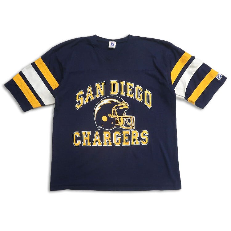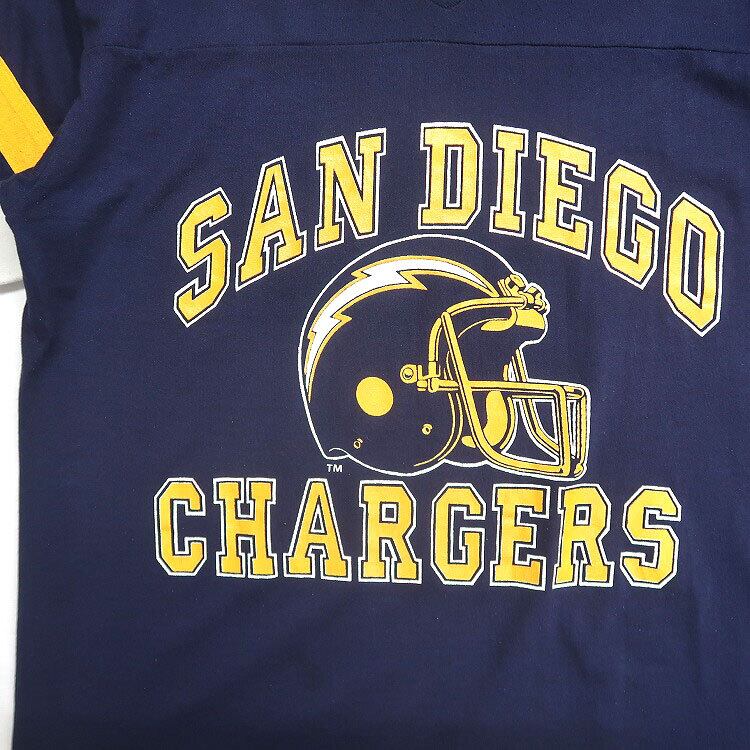 古着 80年代〜 USA製 LOGO7 NFL サンディエゴ・チャージャーズ Vネック フットボールTシャツ ネイビー ビンテージ 表記:XL gd402985n w40623
