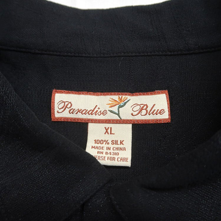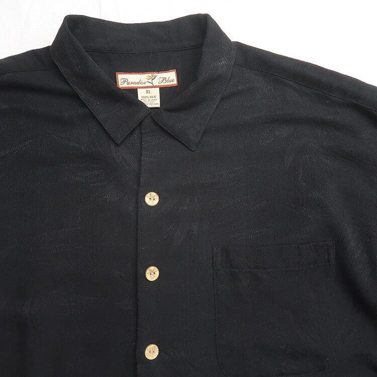 古着 Paradise Blue シルク アロハ ハワイアンシャツ ブラック 表記:XL gd403028n w40627